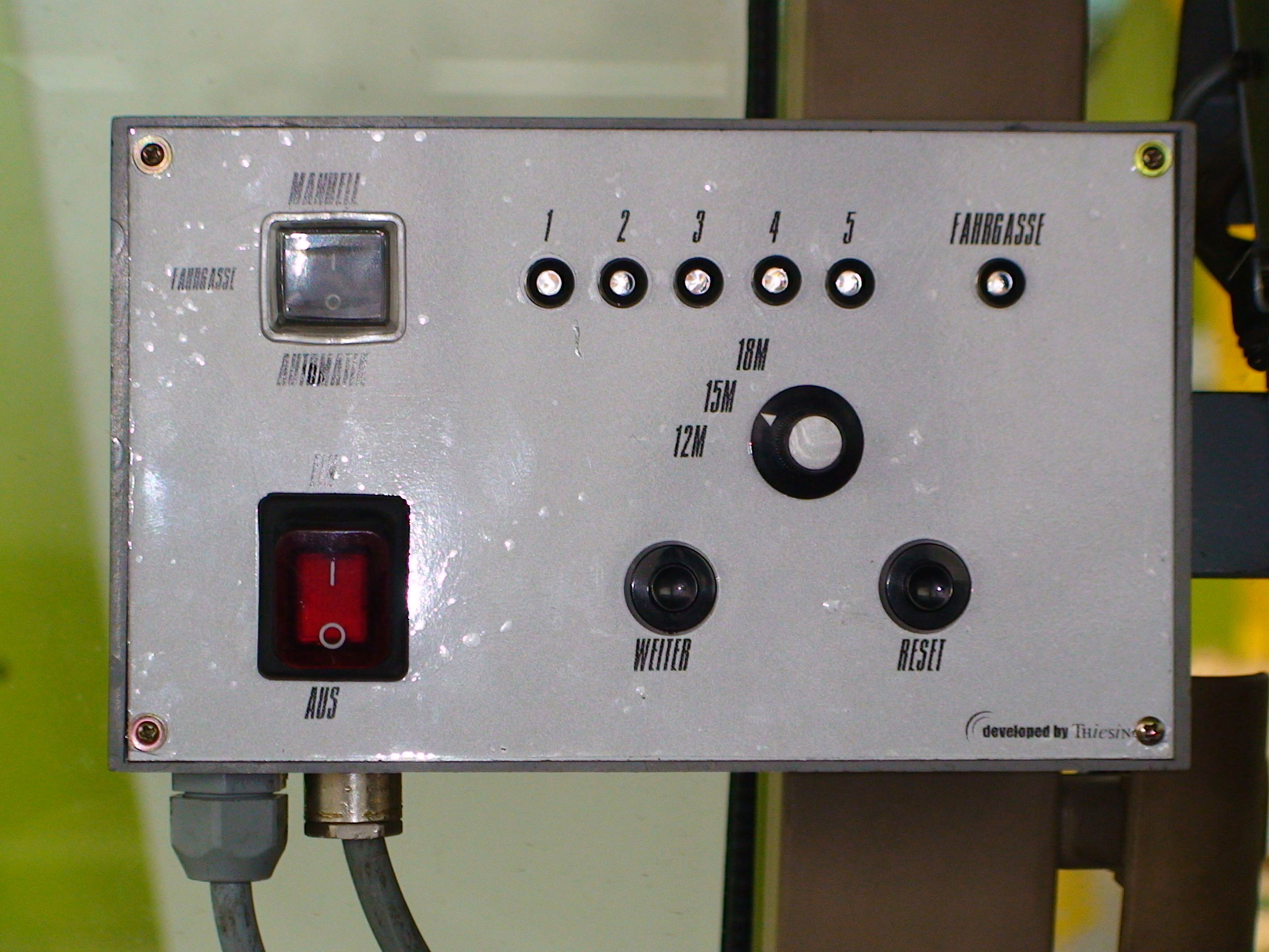 Ein Zähler der durch Schalter oder Induktivgeber die gefahrenen Reihen mitzählt und je nach verwendeter Arbeitsbreite (wir fahren je nach Kunde 12 oder 15 Meter) bei jeder 4ten oder 5ten Reihe 12V bis zum nächsten Wenden als Ausgangssignal hat.