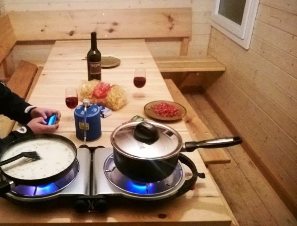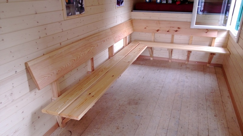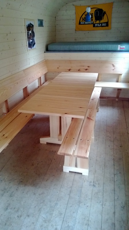 Ich hab ja schon das ein oder andere Bild von meiner kleinen fahrbaren Waldhütte eingestellt. Letzten Sommer hat mir mein Vater noch einen Eckbank und einen Tisch gemacht. Aber seht selbst