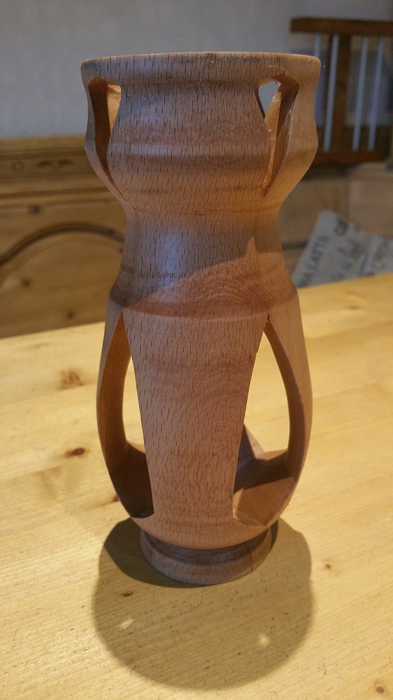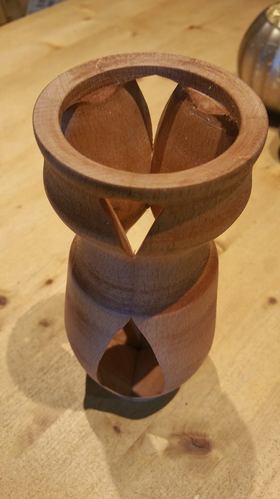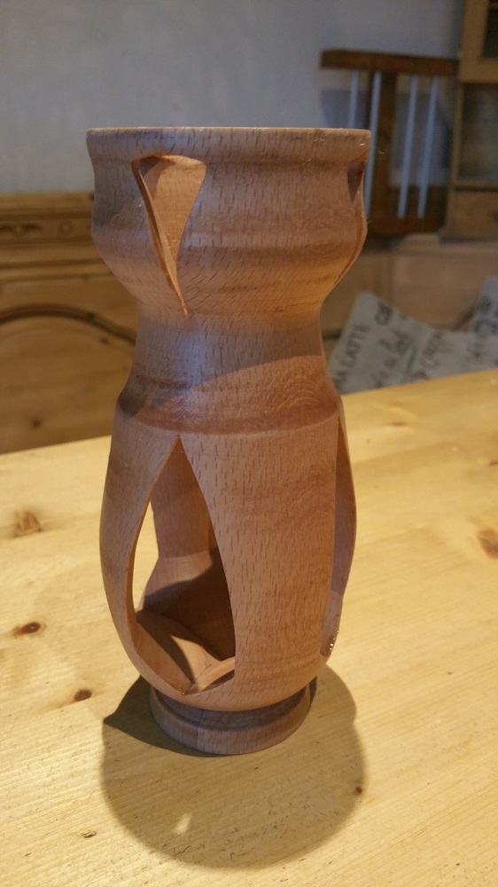 Zu diesem Thread kann ich jetzt auch mal was beisteuern. Aber mal von Anfang an: Meine Holde war mit der Enkelin bei der VHS zu einem Drechselkurs. Da Ihr das Ganze Spass bereitet hat, hab ich mich nicht lumpen lassen, ähnlich wie der Wälder, und hab in Ebay Kleinanzeigen eine Drechselbank ( 50 € da ist nix hin ) gekauft. Natürlich musste ich das Ganze auch testen und muss sagen, es macht doch unheimlich Spass. Meine Kenntnisse hab ich über YouTube bezogen, was aber einen Grundkurs bestimmt nicht annähernd das Wasser reichen kann. Für die Faschingsferien fahren wir beide für 2 Tage ins Allgäu und werden uns dort von einem Profi "schulen" lassen. Glaube das hat mehr Sinn, als eine teure Drechselbank zu kaufen, aber keine Ahnung von der Materie zu haben. Die letzten beiden Tage hab ich ein kleines Projekt gestartet, welches vor einer halben Stunde fertig gestellt wurde.