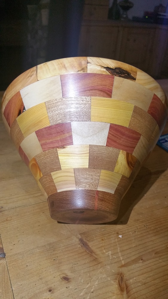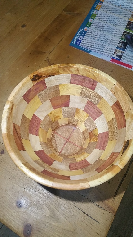 Jein, so ganz zufrieden bin ich nicht, Ich bräuchte im Prinzip eine Präzisionskreissäge, um die einzelnen Winkel Gradgenau ein zu halten, damit man so einige Klebestellen gar nicht mehr sieht.Deine letzte Schale ist mit abstand die bisher schönste!