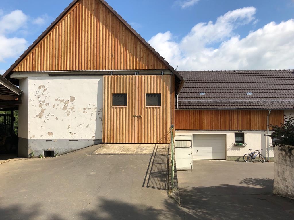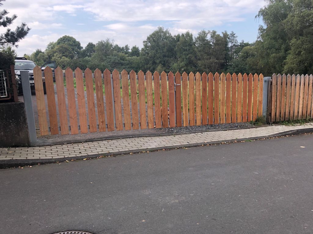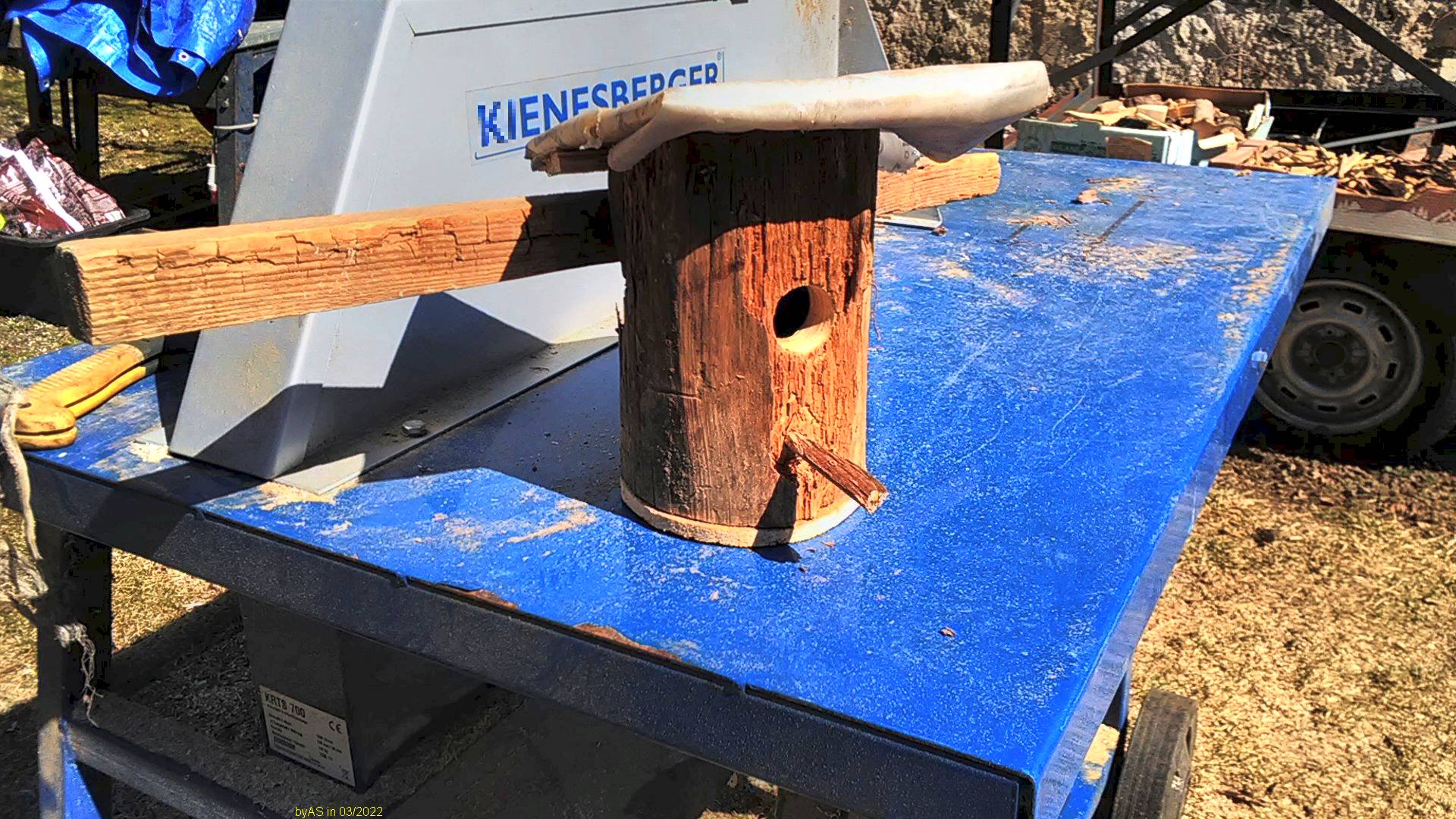 Interessant war dabei, dass der das Holz (war Fichte) mit dem Hochdruckreiniger entrindet hat. Das ging schnell und hat für eine erstaunlich glatte Oberfläche gesorgt, ganz ohne schleifen oder hobeln.