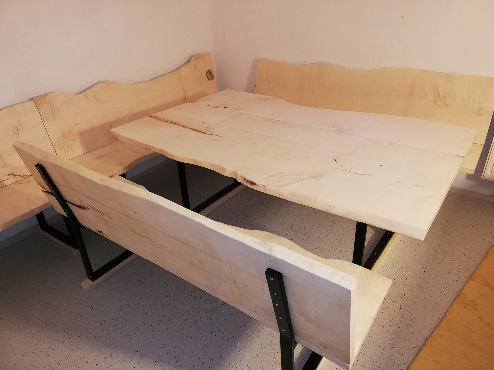 ...und hier noch eine weitere "Endveredelung" von einem knorrigen Eichenstamm. Wobei ich nur die Arbeiten an der Bandsäge beigetragen habe. Geschliffen, geölt und das "finish" inclusive der Idee wie man den Spalt füllen könnte den ich beim Sägen überraschend mitten im Stamm vorgefunden habe, hat alles mein Sohn übernommen. Also eine Generationenbank die man irgendwann immer noch bedenkenlos verheizen kann wenn sie nicht mehr gefällt.