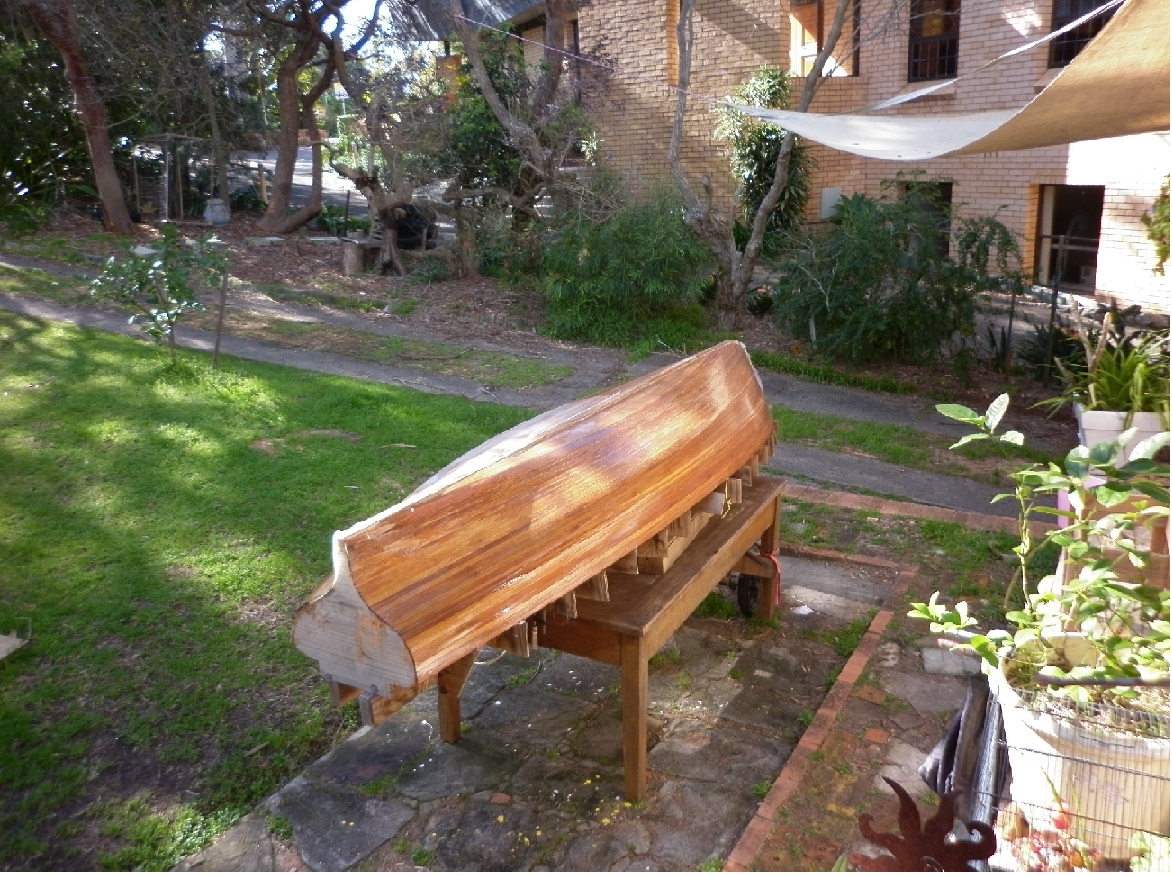 ich habe zwar keine Erfahrung im Bankbau, aber im Bootsbau, und zwar Holzstreifenbauweise. Und das ist mindestens ein bisschen ähnlich, wenn ich deine Fotos sehe.