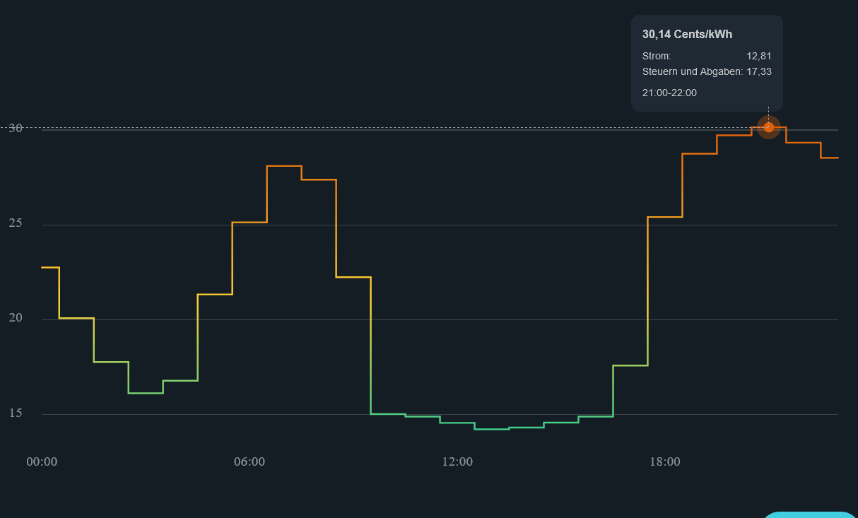 langer711 hat geschrieben:Mich würde mal interessieren, wie weit der Preis über den Tag schwankt bei Tibber und Co.