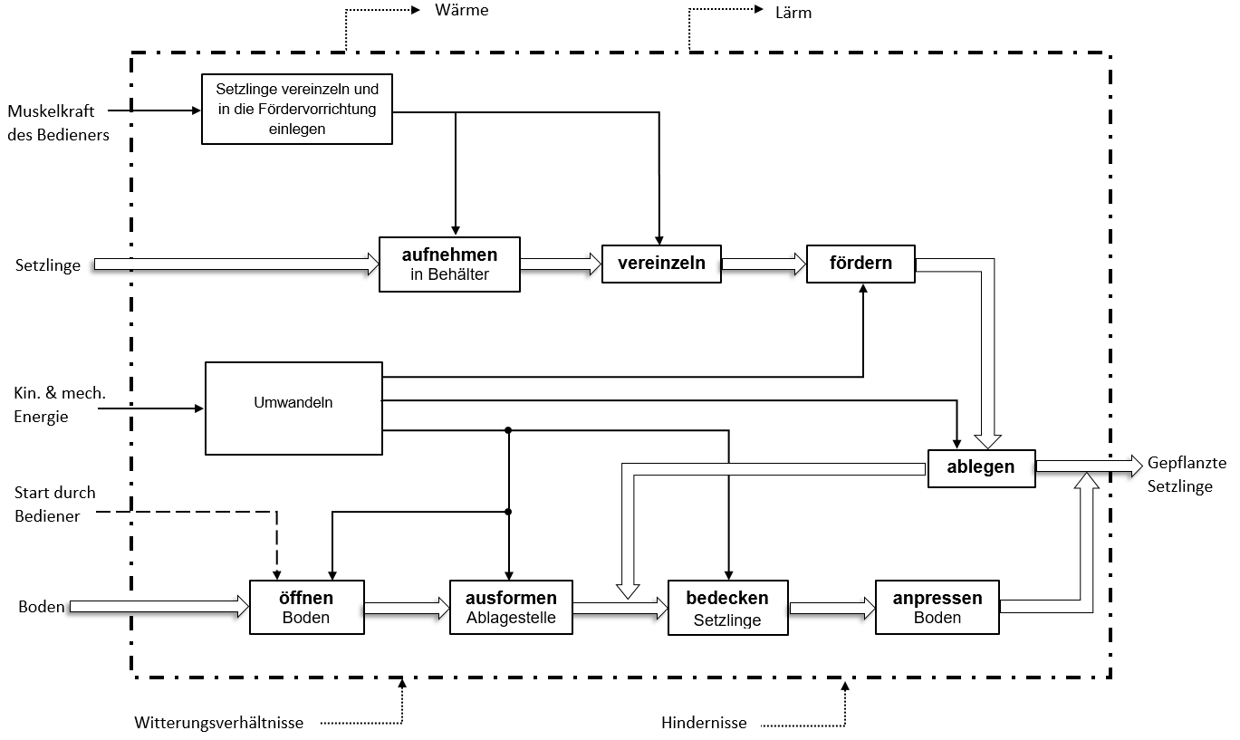 eine Hausarbeit beginnt mit der Einleitung, in der man reinschreibt, welchen Teilbereich des Problems man bearbeiten wird, nämlich eine Baumpflanzmaschine für Baumschulen oder Energieholzplantagen oder vielleicht auch zur Anlage von Hecken gegen Winderosion in Steppengebieten und nicht für den Forst.