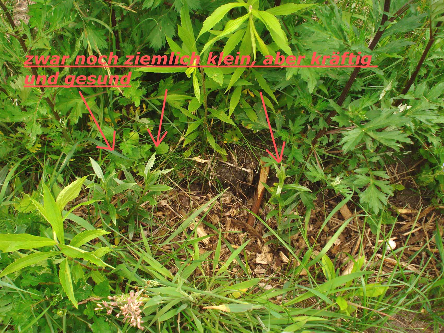 @ksteve Die unbehandelten Flächen zwischen den Reihen jucken mich nicht weiter, Hauptsache das ungewollte Kraut wird rechts und links der Weide in der 1. Vegetationsperiode einigermaßen unterdrückt. Nach Deiner Empfehlung wäre mein Ziel – keine Chemie, ein Arbeitsgang (siehe oben) – verfehlt. Es geht auch anders, guckst Du Foto „gesäte Weide“, Methode muss nur verfeinert werden. Hab hier allerdings mit Hackschnitzel statt mit Erde abgedeckt.