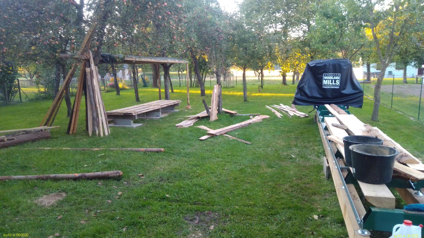 Und nicht zuletzt eventuell eine Einhausung für die Säge selbst - obwohl da vorne eine Spannweite von 7 m eine kleine Herausforderung wäre ...