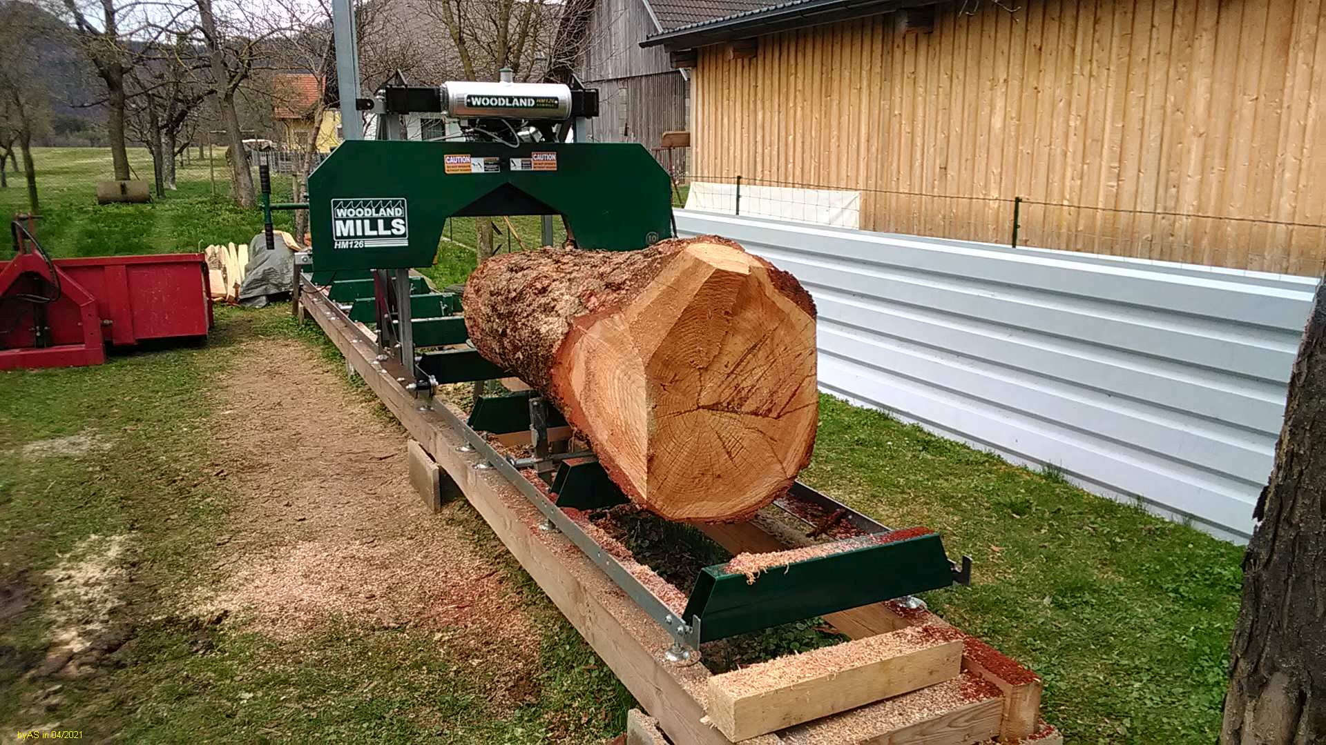 (das Tor hab' ich erst vor 2 Jahren auf 3 m verbreitert - da wusste ich noch nicht, dass ich ein Jahr drauf eine Bandsäge dahinter