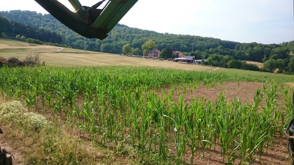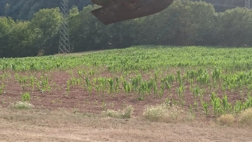 Fassi hat geschrieben:Ich hatte vorhin mal das Handy mit als ich bei den Pferden das Wasserfaß gewechselt hab. Hier mal Bilder von Mais auf den Trockenstandorten der Gemarkung. Man sieht sehr deutlich, wo nicht viel Erde auf den Felsen liegt und was drei Wochen Abstand beim Säen in diesem Jahr für einen Unterschied ausmachen können: