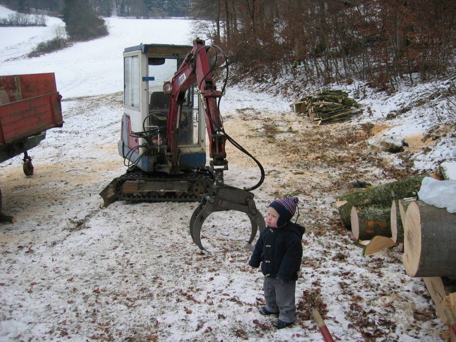 Hab letztens meinen 2.grössten (3,5 Jahre) und den gleichaltrigen Nachbarsjungen mit in den Wald genommen, als ich ne Runde Holz aufgeladen hab,.... er ist am Ort vom Buldog abgestiegen, einmal drumrum gelaufen und hat dann gefragt: Papa, wann gehen wir heim???