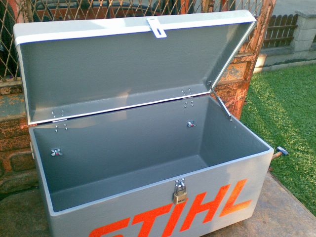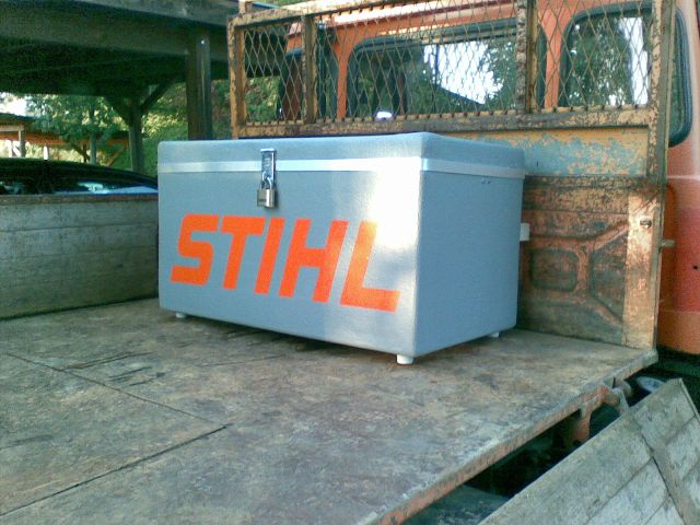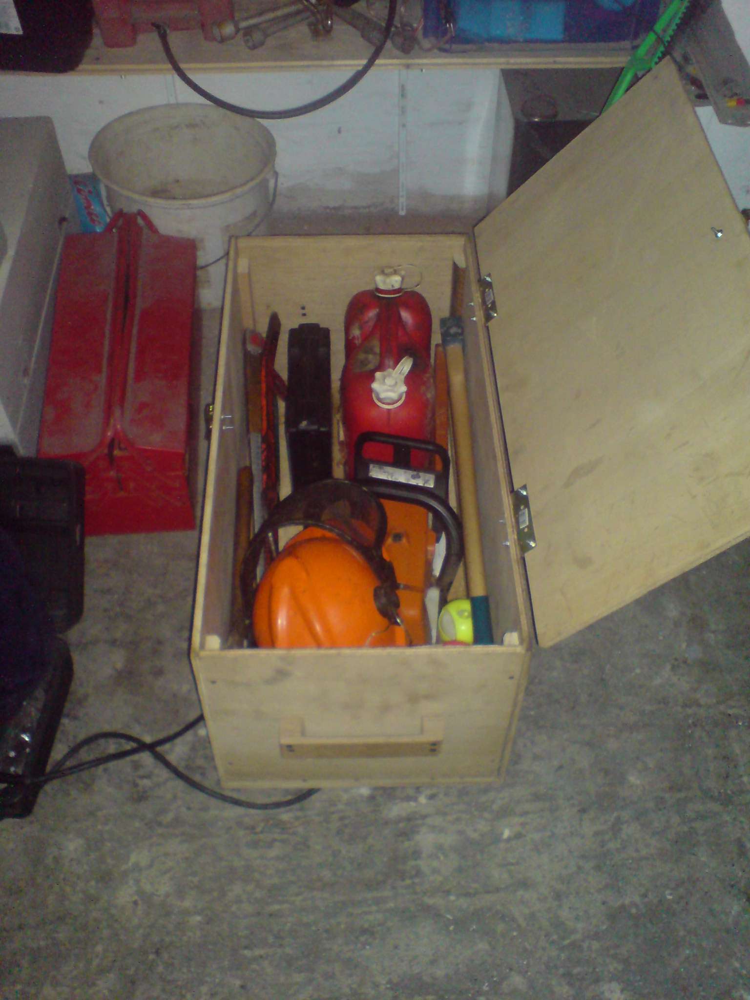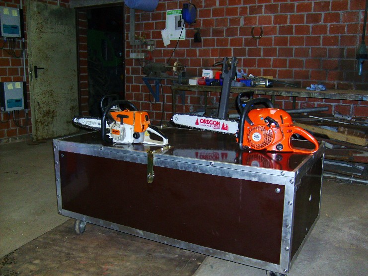 Wenn sich nun die Gemüter wieder beruhigt haben, hätte ich mal gern ein paar Fotos von Holz-/ Kunststoff- oder Metallkisten, in denen all jene ihre Utensilien zum "Holzen" verstauen und transportieren können, die nicht über Trecker/Schlepper/Unimog und ähnlich schweres Gerät verfügen. Von denen gibt`s hier im Forum bestimmt auch noch welche !