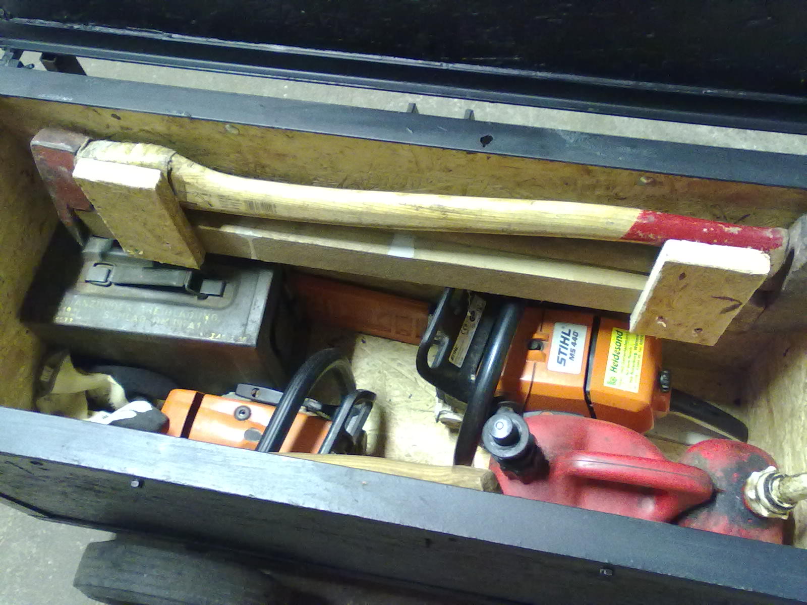 Wo kommstn du her? Der Müller-Aufkleber auf der grossen Säge ist trotz Unschärfe unverkennbar