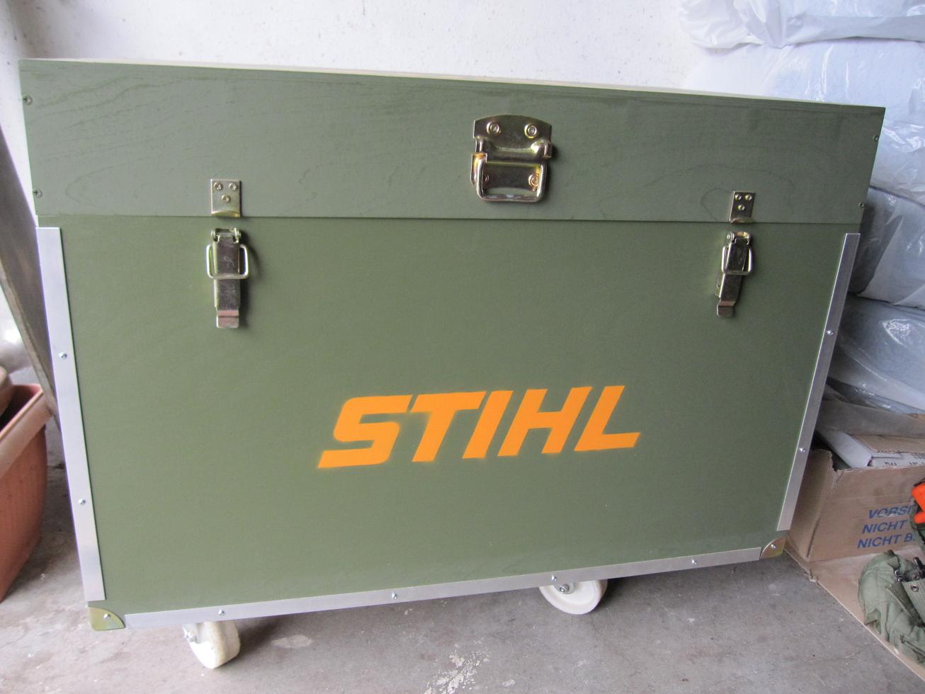 heute hab ich auch mein Kistenprojekt abgeschlossen. Wenn ich zum Fällen unterwegs bin hab ich die Gitterbox in den Kettenfallen der Winde hängen, aber am Kombikipper hab ich einfach Stauraum vermisst. Hab lange überlegt wo ich die am Besten unterbringe und hoffe das ich den Platz gut gewählt habe. Immerhin hängt der Stützfuß davor noch 3 cm tiefer so das der erst mal an ein Hindernis anstossen würde bevor die Kiste dran ist. Ich bleib aber eigentlich mit dem Kipper immer auf den Wegen. Mal sehn wie sie sich im Winter bewährt, zunächst bin ich mal stolz das ich als gelernter Büromensch so was hinbekommen habe und freu mich auf den baldigen Einsatz.