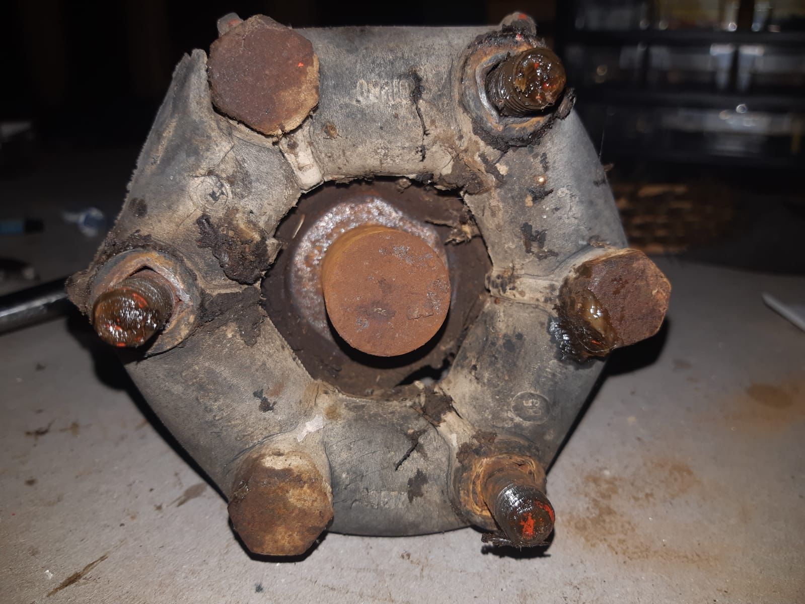 Folgendes Problem habe ich, die hintere Hälfte ist fest an der Hardyscheibe verschraubt, also ist ein ersetzen mit einer handelsüblichen schwierig.