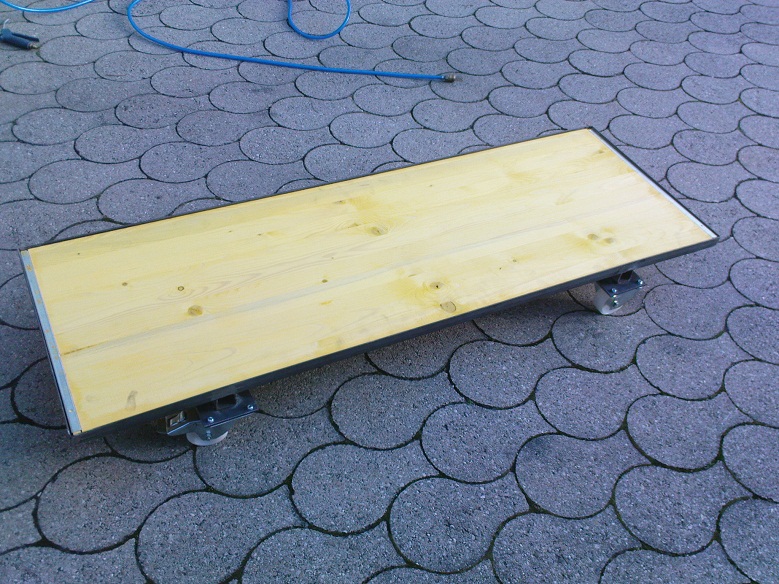 Haben für unsere "Kleingeräte" (Düngerstreuer, Spritze, Heckcontainer, etc) bereits so fahrbare Wägen. Das ist natürlich saupraktisch weil man so viel einfacher umstellen und auch anbauen kann.