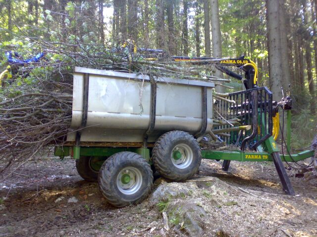 so ähnlich habe ich es gemacht, einfach einen 8t Einachskipper genommen, Rohre auf Stahplatten geschweißt und auf den Brückenrahmen geschraubt. Das ganze dann am Kran der am Schlepperdreipunkt hängt angehängt. Das Gespann ist so ein sehr guter Rückewagen und gleichzeitig vielseitig einsetzbar. Für Fixlängen bis zum Restholz.