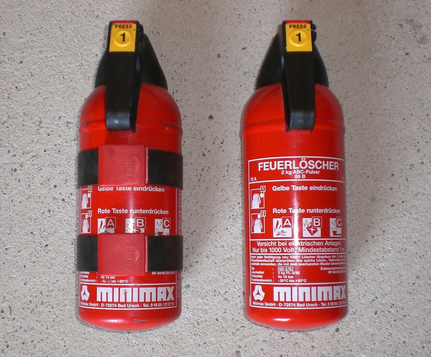-für Brände der Klasse A und B gibt es den konventionellen Wasser-Löscher. Eine Patrone drückt das Wasser fein zersteubt aus der Düse. funktioniert gut und stellt ein günstiges Rettungsmittel dar. Allerdings bitte kein Wasser auf heißes Öl (Pfanne auf dem Herd...) geben!!! ->brennden Pfanne decken sie einfach ab, zur Not mit dem Geschirrtuch, danach laufen Sie ins Bad und holen ein Handtuch.