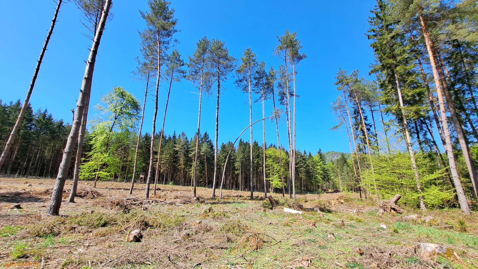 Es stehen noch ca 50 gesunde Fichten sowie 50 gesunde Kiefern vereinzelt.