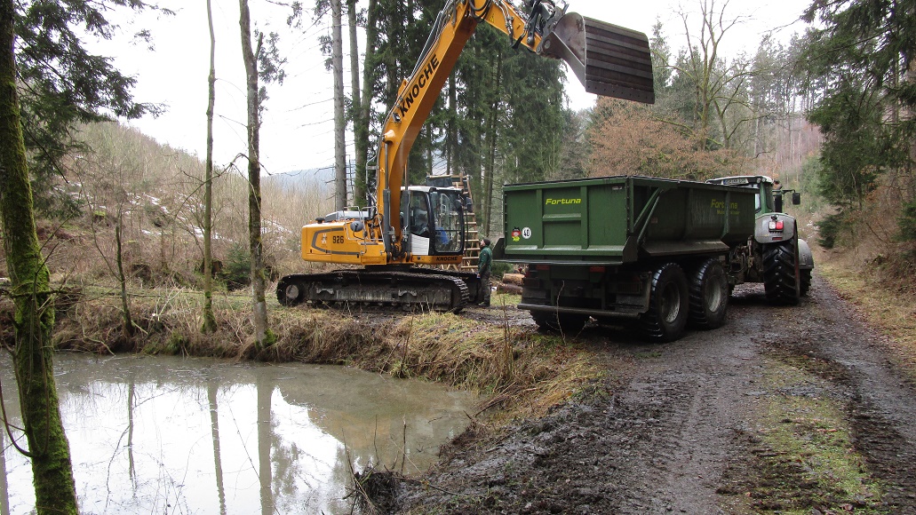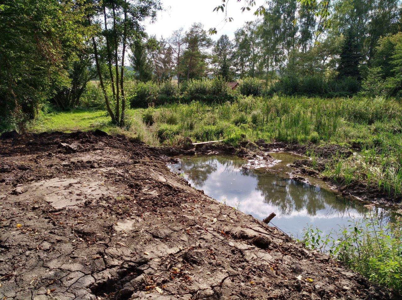 Der Schlamm würde auf dem Grundstück bleiben (Ufer erhöhen + einen Teil vom Weiher verkleinern)