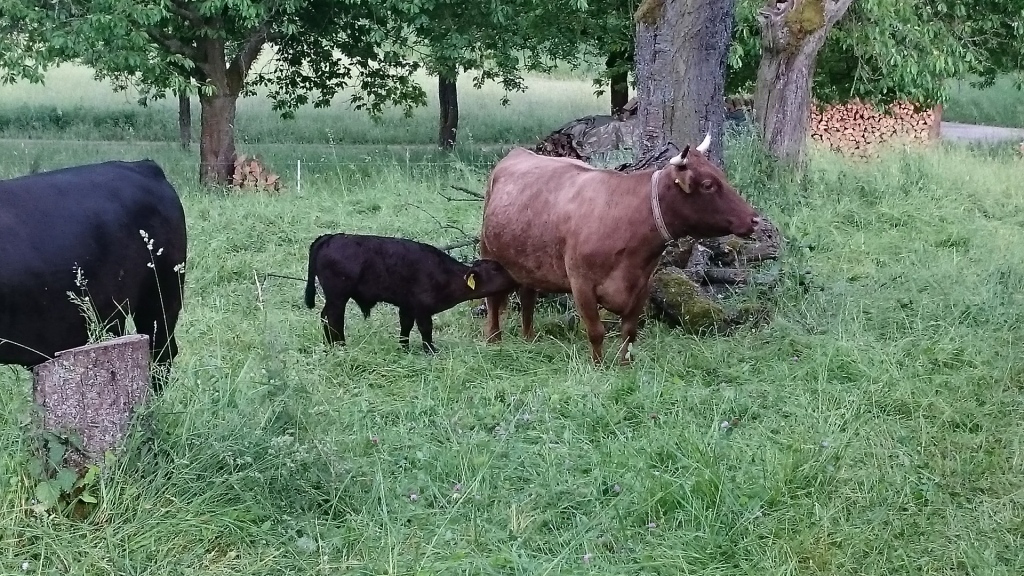 Die ist mit 6 Monaten schon tragend geworden?Meine "Kinderüberraschung" und das einzige weibliche Kalb des Jahres. Hat mir ein wenig schlaflose Nächte bescherrt, die Mutter war bei der Geburt 15 Monate alt: