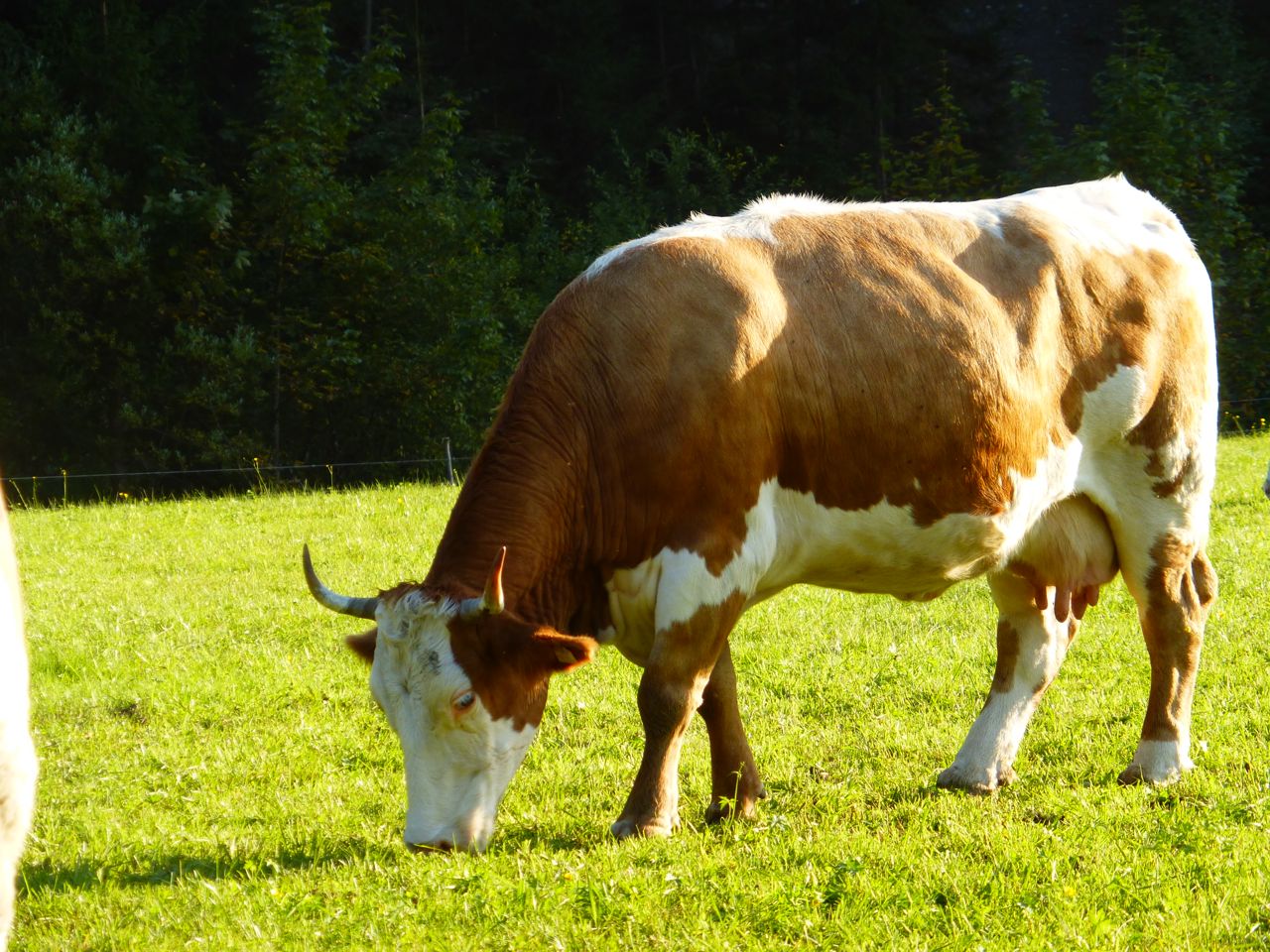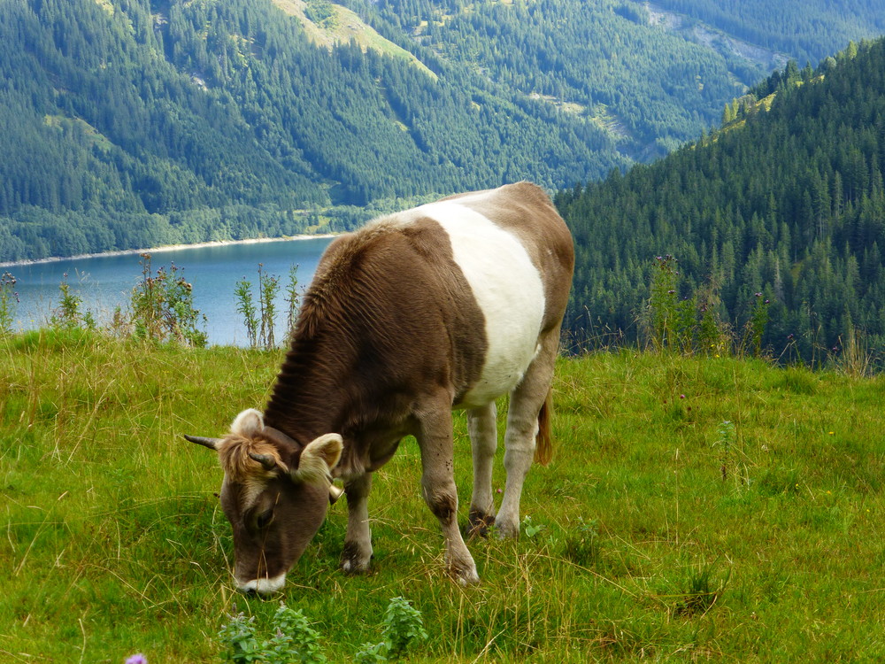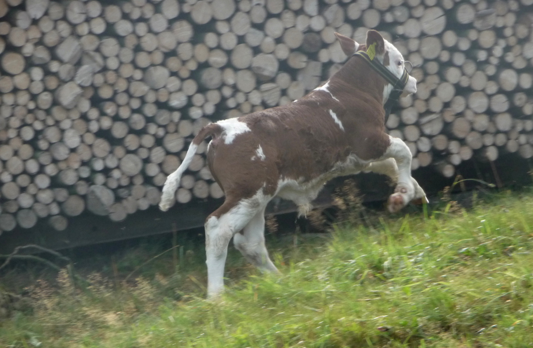 Außerdem noch einige Bilder von Schweizer Blüem Kühen die absolut genial sind und mir auch diesen Sommer unterkamen. Eine hat das Gen doppelt (von beiden Elternteilen, oder so ähnlich) vererbt bekommen und zeigt darum einen deutlich höheren Weißanteil.