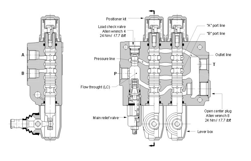 Keine Ahnung ob in Stellung 2 das Öl von B zum Tank und zeitgleich druckloser Umlauf ist, wenn nicht würde der Druck übers DBV gehen vlt. kann man es über die Rastungen einstellen kann ich so nicht sagen, aber wenn Stellung 2 ohne drucklosen Umlauf ist bringt auch die DWL nix da diese dann geschlossen ist.