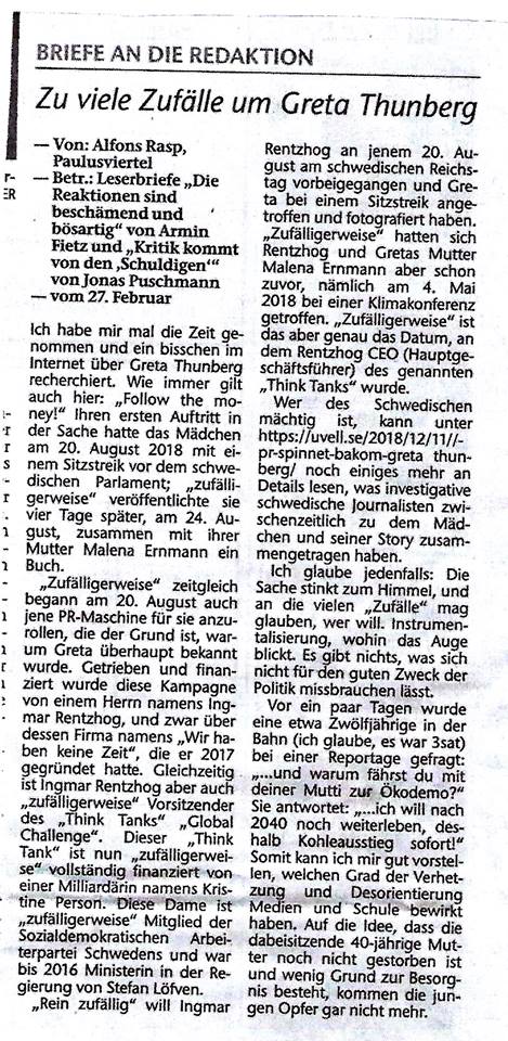 Das entzieht sich meiner Kenntnis.Greta Thunberg: Die Instrumentalisierung einer minderjährigen Behinderten