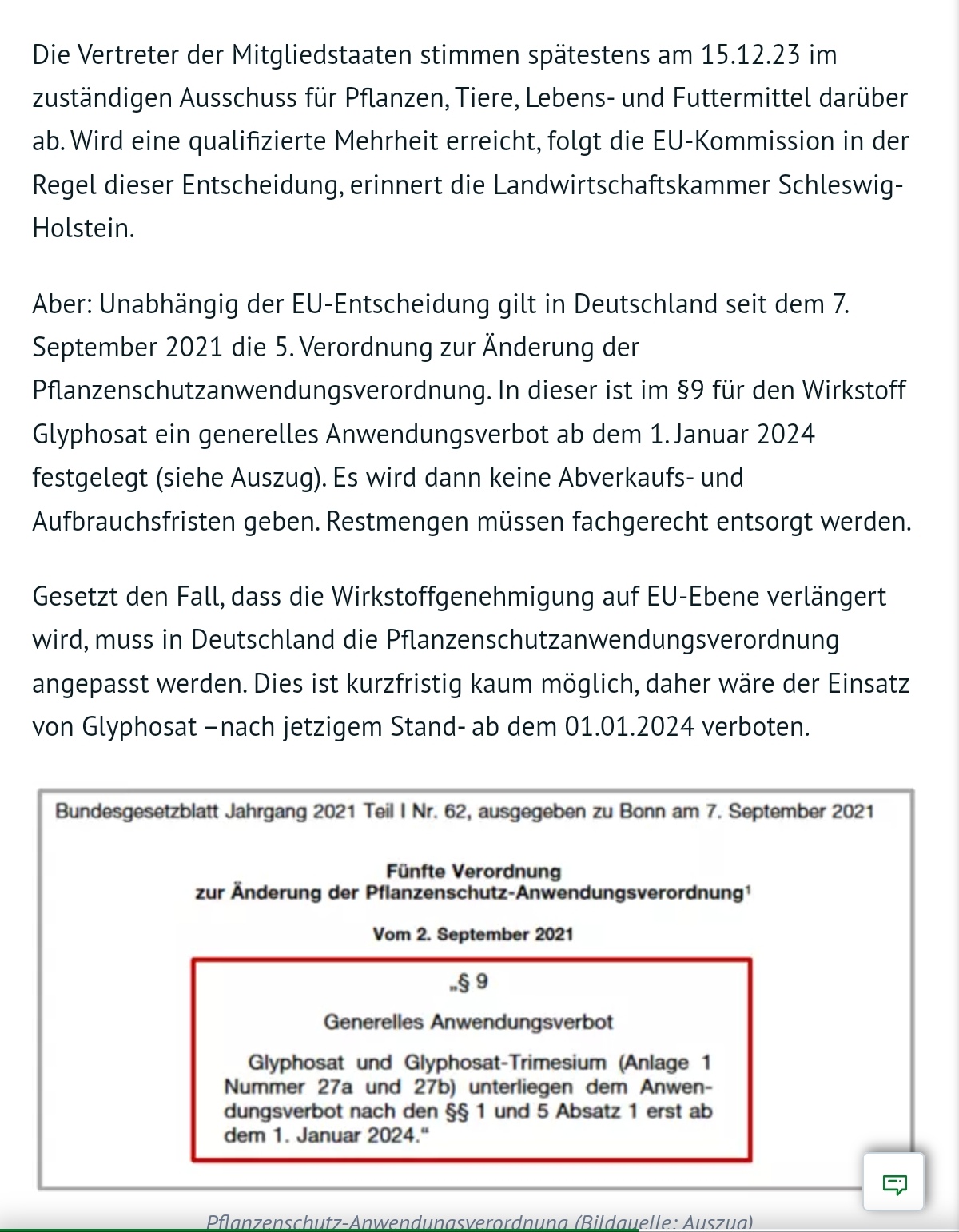 Die von der Europäischen Kommission zitierte Stellungnahme könnte den Weg für die Zulassung der Chemikalie für einen Standardzeitraum von 15 Jahren ebnen.