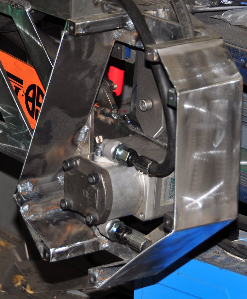 Angetrieben wird die Kette mit einem Hydraulik Zahnradmotor so wie sie auch in den Sägespaltautomaten verbaut sind.