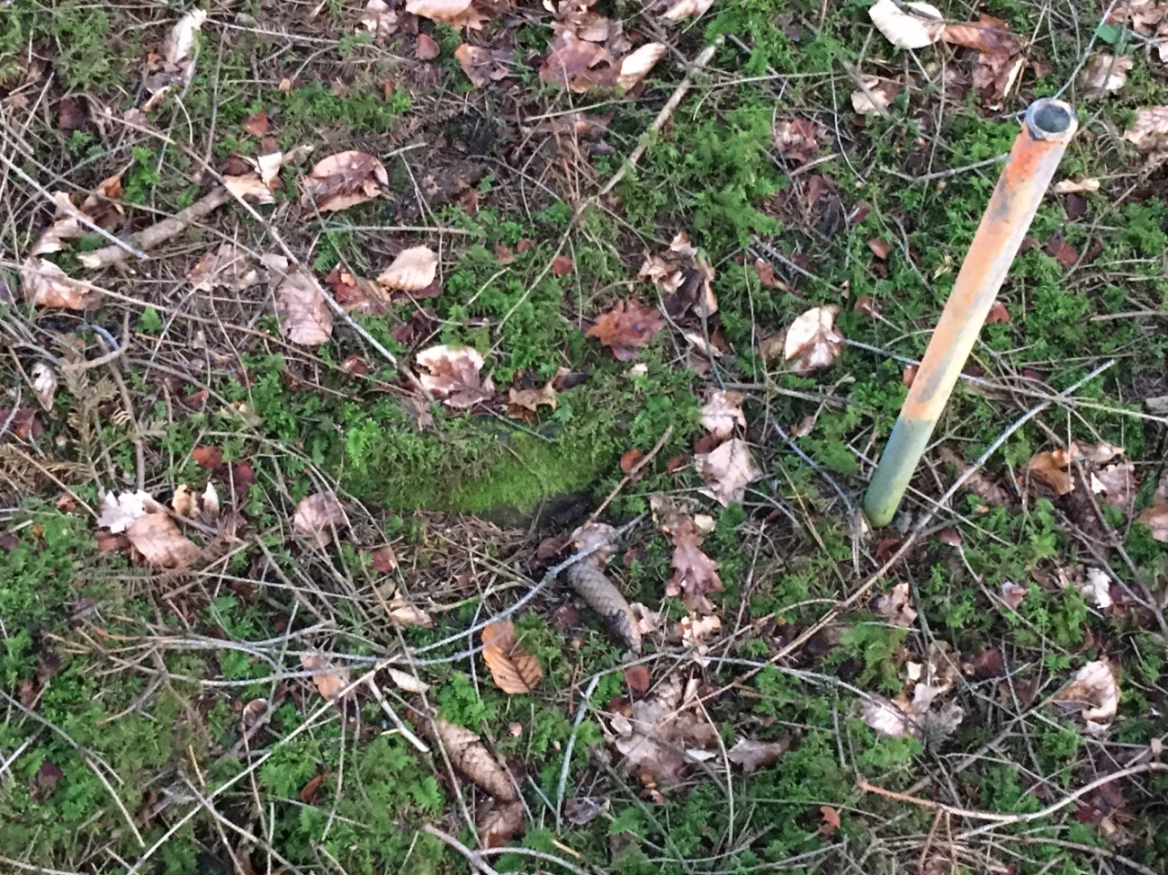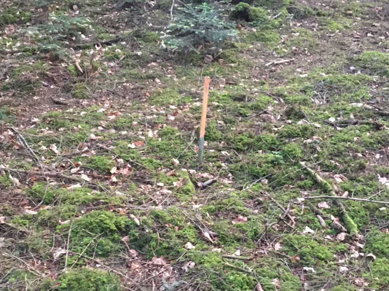 Zur Not muss man an manchen Stellen auch mal ein, zwei Fluchtstäbe setzen um den Grenzverlauf nachverfolgen zu können und anschließend an den Bäumen die Markierung anbringen zu können.