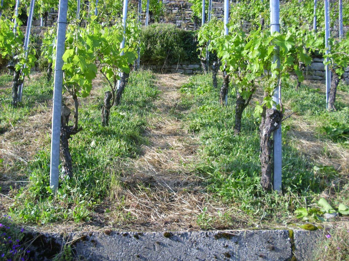 Noch zwei Bilder vom anderen Habichtskrautwengert: Nachdem ich vor einer Woche gemäht habe sieht man den Status der Unterstockbegrünung mit dem Habichtskraut ganz gut.
