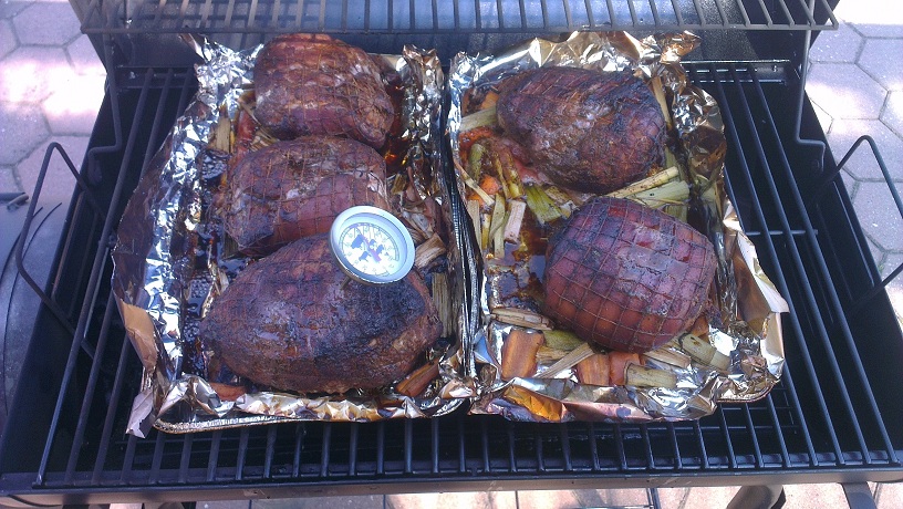 hi ich hab einen smoker (ziemlich billigen 129.99) und bin allerdings recht zufrieden, ich feuer ihn ab und an sonntags mal an. Man(n) kann alles erdenkliche darin machen, braucht nur fantasie und vorallem viiiieeel zeit ich hab beim letzten mal n paar kleine Spanferkelrollbräten gemacht, hatte sie mit einem chili-paprika-brauner zucker rub eingerieben und 48 stunden eingeschweißt. Dann mit bisschen gemüse (lauch, karotte, etc.) in die alu schale und rein damit. immer schön bei 120grad celcius halten und nacht gut 4 stunden waren sie herrlich. habe sie immer wieder mit einer balsamico/weiswein/brauner zucker reduzierung bepinselt.