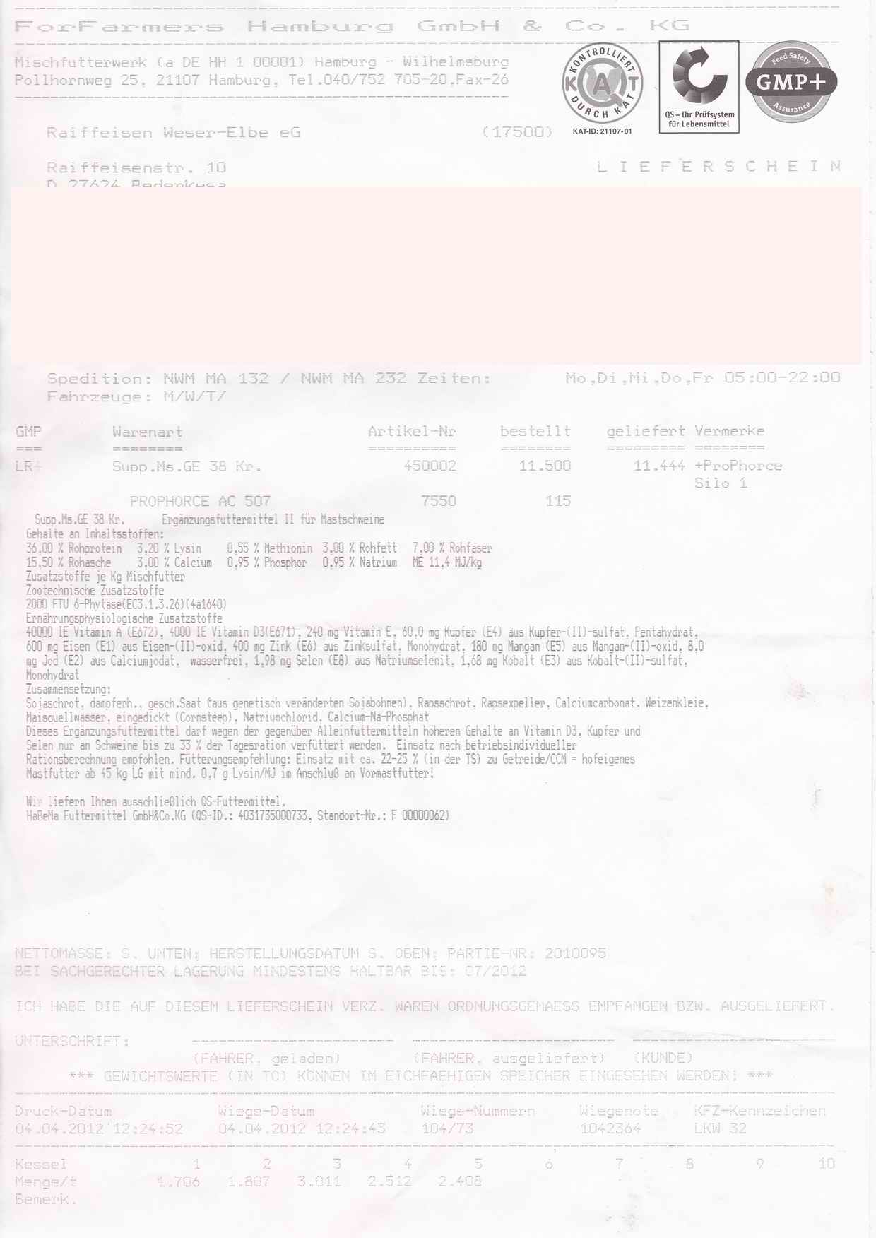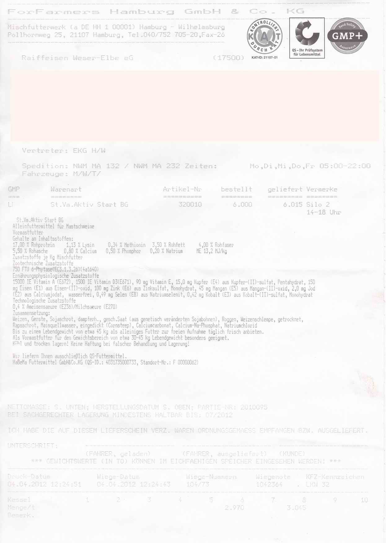 Cairon hat geschrieben:Schweine bekommen eine Mischung aus Soja, Getreide, Mineralstoffen und Vitaminen. Da ist alles drin was sie brauchen.