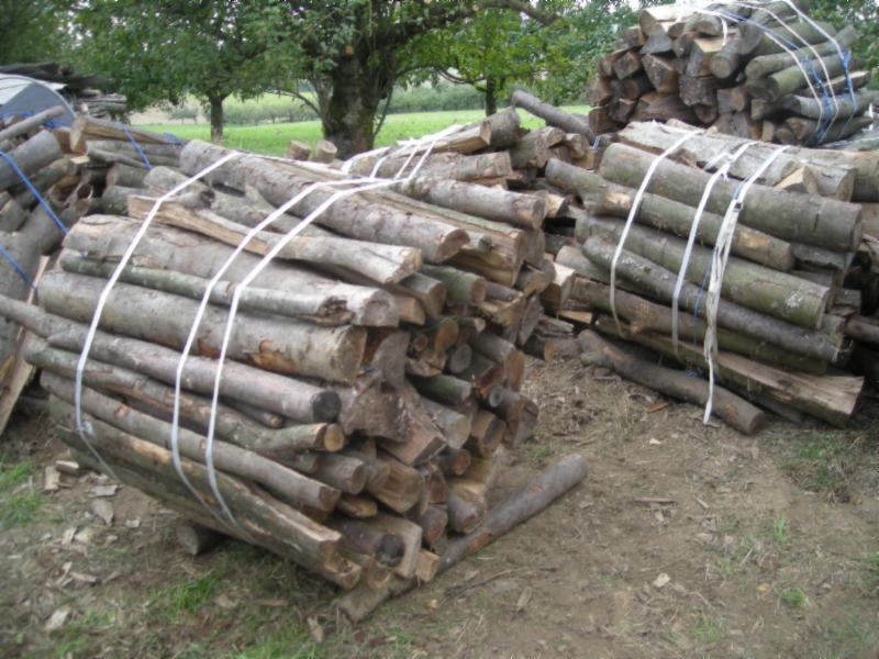 Ich hab das mit dem Bündeln heuer das erste mal probiert. HR Schlepper mit Klinklader und Bündelgestell aus 2 halbkreisförmigen U- Profilen, die ich selber gebogen habe, und die einfach am Boden stehen (eventuell mit Scheiten gegen Wegrollen gesichert, so braucht man auch keinen 2. Traktor etc...) => Low Cost Ansatz. Dazu eine drehbare Hubtraverse mit 2 nicht scharfkantigen Haken (zum Einhängen am Band) am FL und schon kann man die Bündel bequem stapeln. Ich verwende 19mm Bänder mit phosphatierten Klemmen. Es ist keines der Bündel an den Klemmen aufgegangen- jedoch 2x ist das Band gerissen, weil es an scharfen Kanten verletzt wurde. 4% Ausfallquote ist für mich ok! Bündeln ist kurz und knapp eine Arbeitserleichterung und Zeitersparnis, wenn man das Holz nicht am selben Ort lagert oder schneidet wo es gespalten wird.