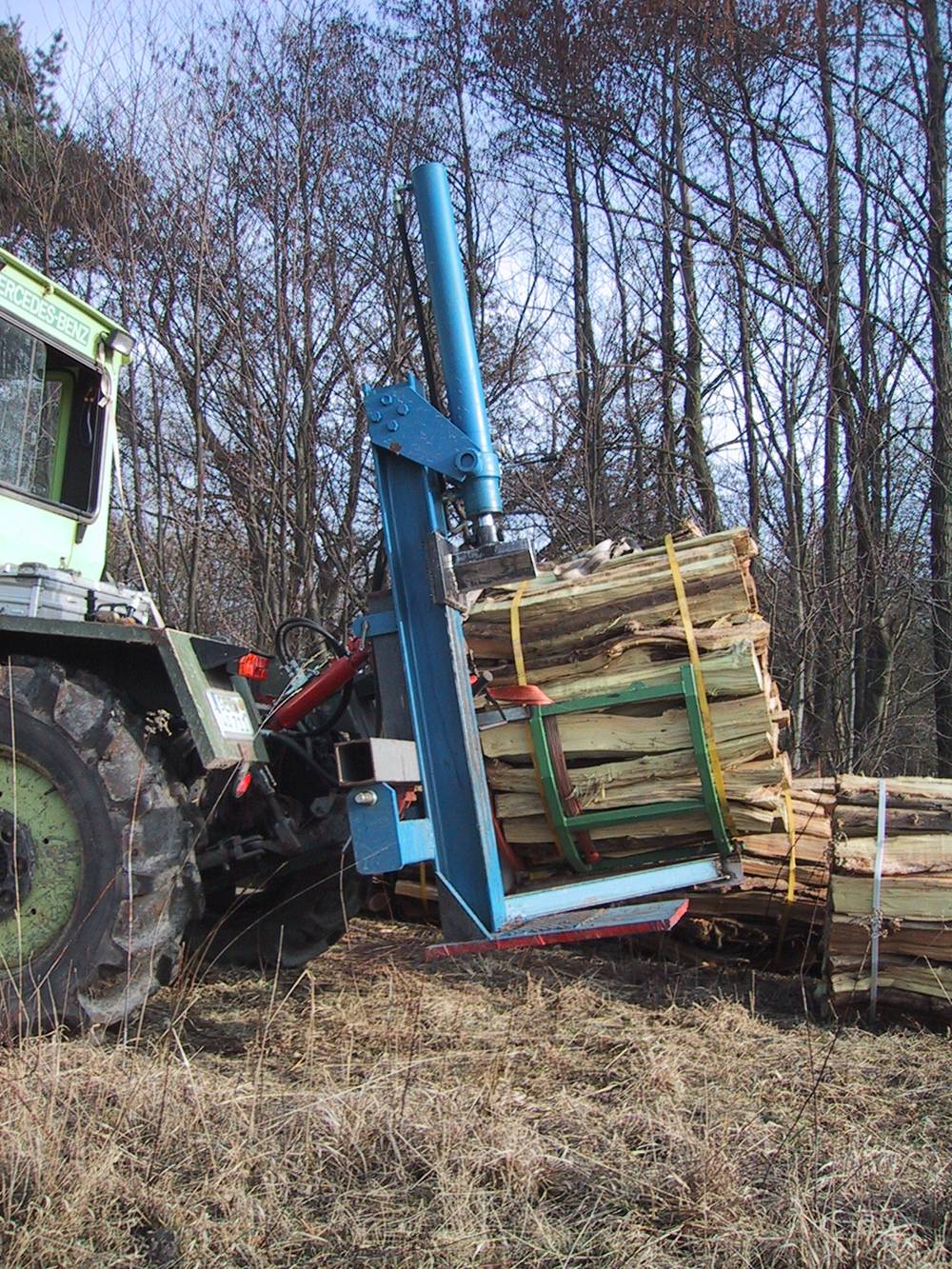 Ich bin schon seit längere Zeit am überlegen mir selbst ein Holzbündelgerät zu bauen, da ich jedes Jahr an die 100-150 Raummeter bearbeite. Traktor mit Frontlader ist vorhanden.