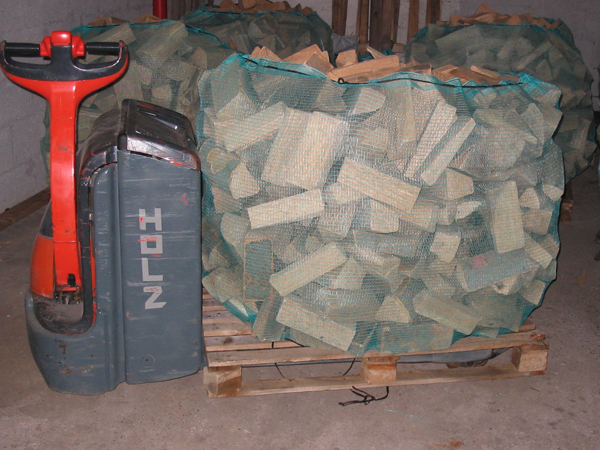 ich lagere mein Holz in Großraumkisten 1,10 x 1,10 x 0,60 da mache ich dann noch Bretter an zwei Seiten dran die 1,30 hoch sind, das Holz wird dann dort hinein gestapelt so bekommt man 1,5 rm in so eine Kiste. Die wird dann draussen gelagert und abgedeckt mit Folie 1,30 breit vor dem Winter wird dann immer soviel Holz in die Scheune geholt wie wir für eine Heizsaison brauchen. Diese Kisten lassen sich dann wunderbar mit dem Traktor hin und her fahren mit der Palettengabel. Ich habe auch noch Eisengestelle da passen 2 rm rein die haben Rollen drunter zum Fahren, die lagere ich unter dem Schleppdach hinter der Scheune. Ich habe so die Möglichkeit 60 rm zu bunkern.