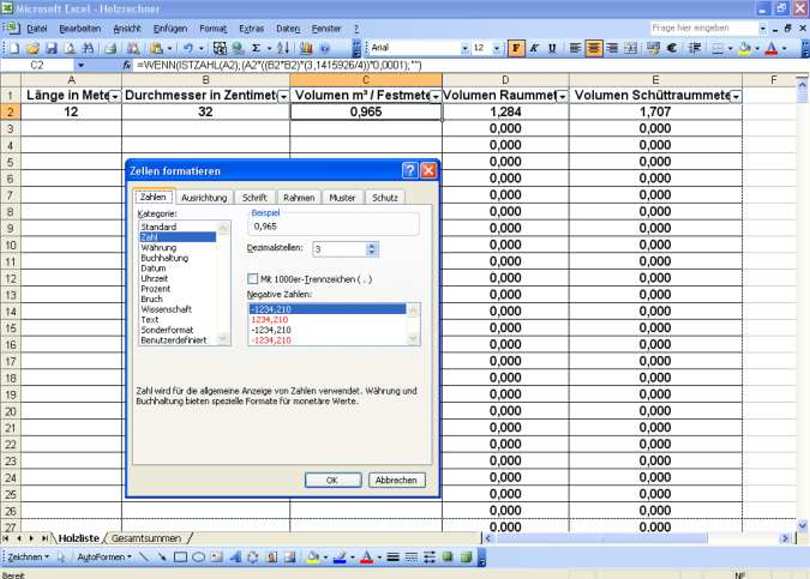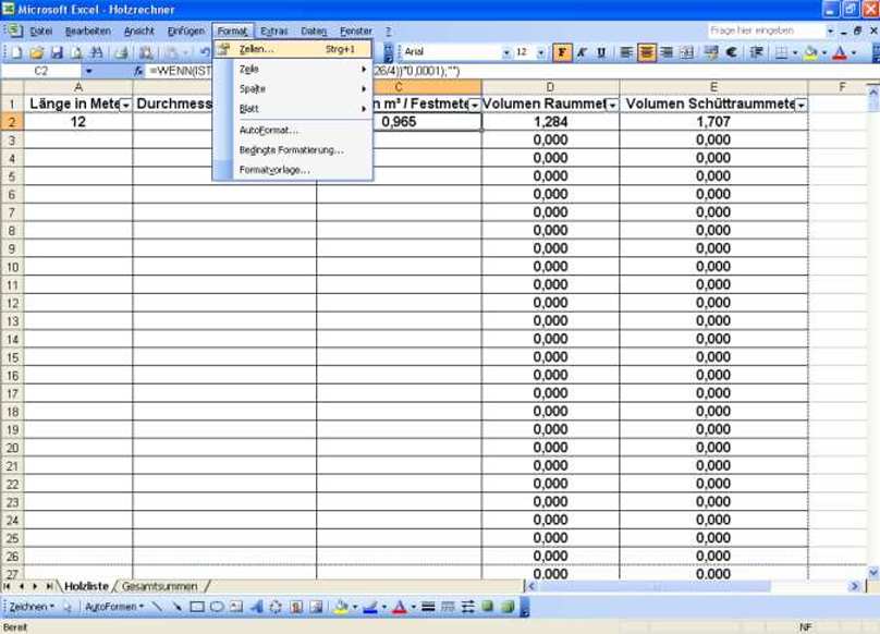 Klick auf die Zelle wo das Ergebniss 1Festmeter steht.