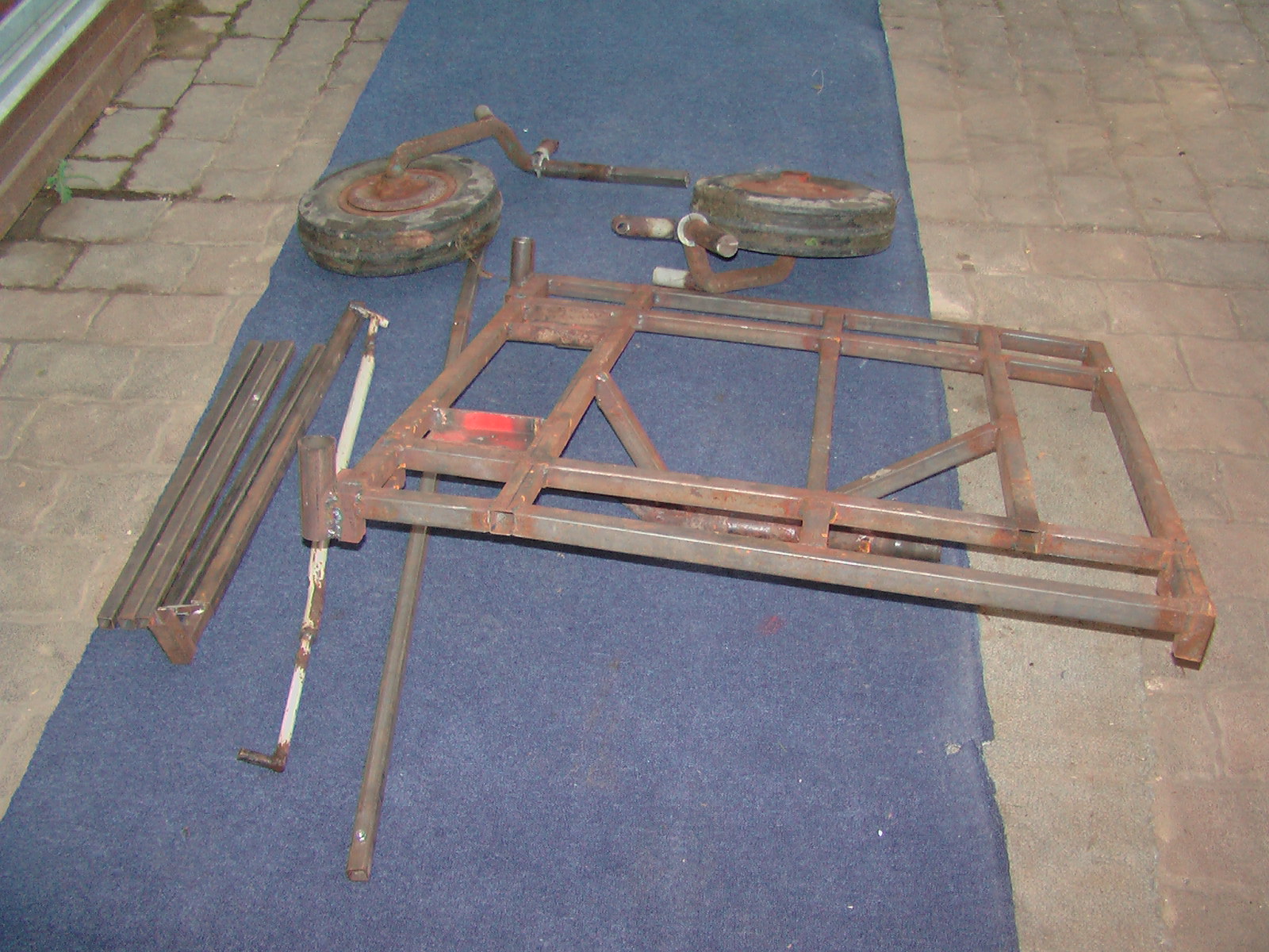 Bei einem weiter entfernten Wald werde ich zukünftig mein Bastelgespann nutzen. Ein Probelauf mit 0,5 Rm trockenem Eichenholz auf ebenem Gelände mit Fahrspuren war erfolgreich. Die erste Version hat sich wegen zu geringer Spurbreite und überlasteter Räder im hügeligen Gelände (Eifel) nicht bewährt (ist umgekippt). Die Grundkonstruktion mit drehbar gelagertem Vorderwagen und zwei angetriebenen Räder erscheint aber geländegängig zu sein. Der “Meterholztransporter“ ist von einer Person demontierbar (Hako Profivariette wurde auf dem PKW-Hänger in Meterstücke “eingebaut“, der Vorderwagen demontiert oben auf dem Holz befestigt bzw. im PKW-Kofferraum transportiert). Wenn die Bedingungen nicht zu ungünstig sind (Topographie, Wetter, Fahrspuren etc.) erwarte ich eine erhebliche Erleichterung gegenüber dem Transport per Schubkarre.