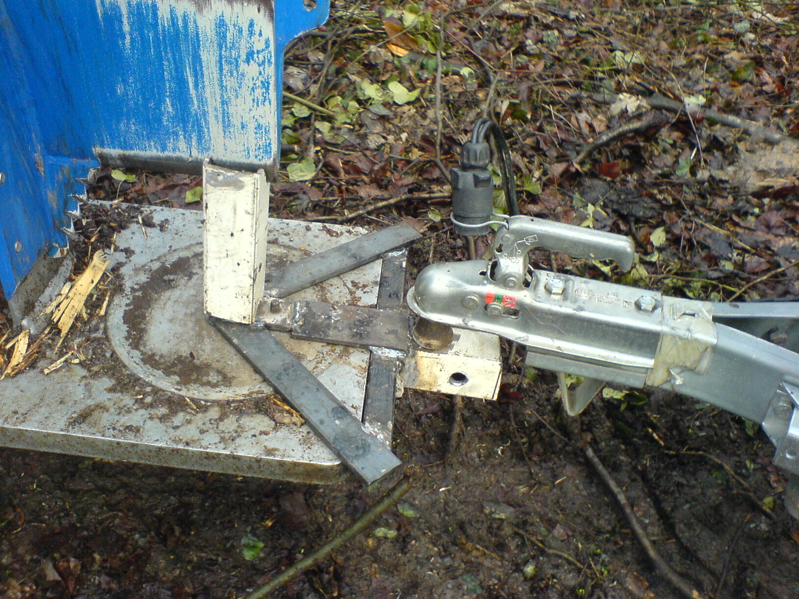Da beim Binderberger ein Loch für den Drehteller ist, hab ich das mal genutzt!! Ich ziehe aber nur den leeren Anhänger am Spalter, lass den vollen Hänger stehen und hol ihn später mit dem PKW ab.