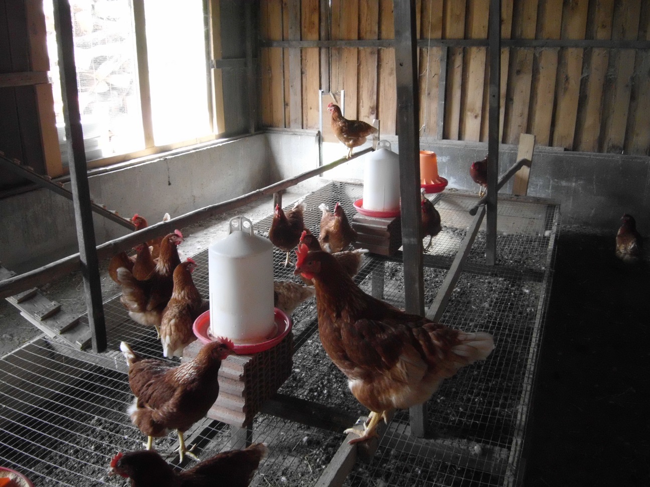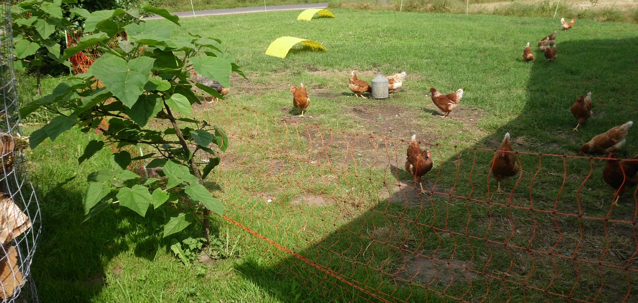 Natürlich war da mal Rasen...dafür bleiben wenigstens die Büsche...Was demnächst noch kommt sind mehr Tränken. Mir war nicht klar, dass Hühner zu viel trinken...