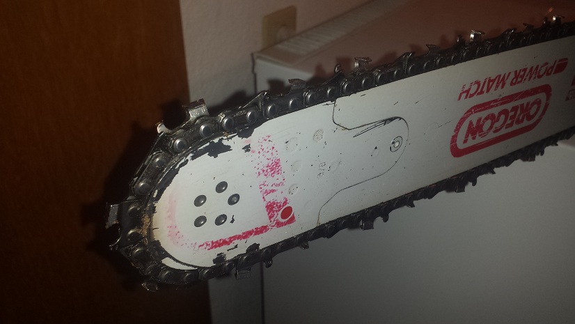 45iger Oregon Schwert ist derzeit verbaut (Kette und schwert sind eigentlich noch ok)