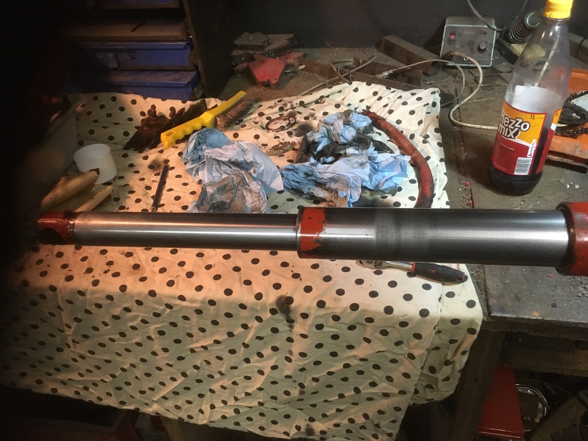 Also müssten die Kolbenstangen ja aus dem Zylinderrohr zu ziehen sein...oder zumindest eine von beiden.