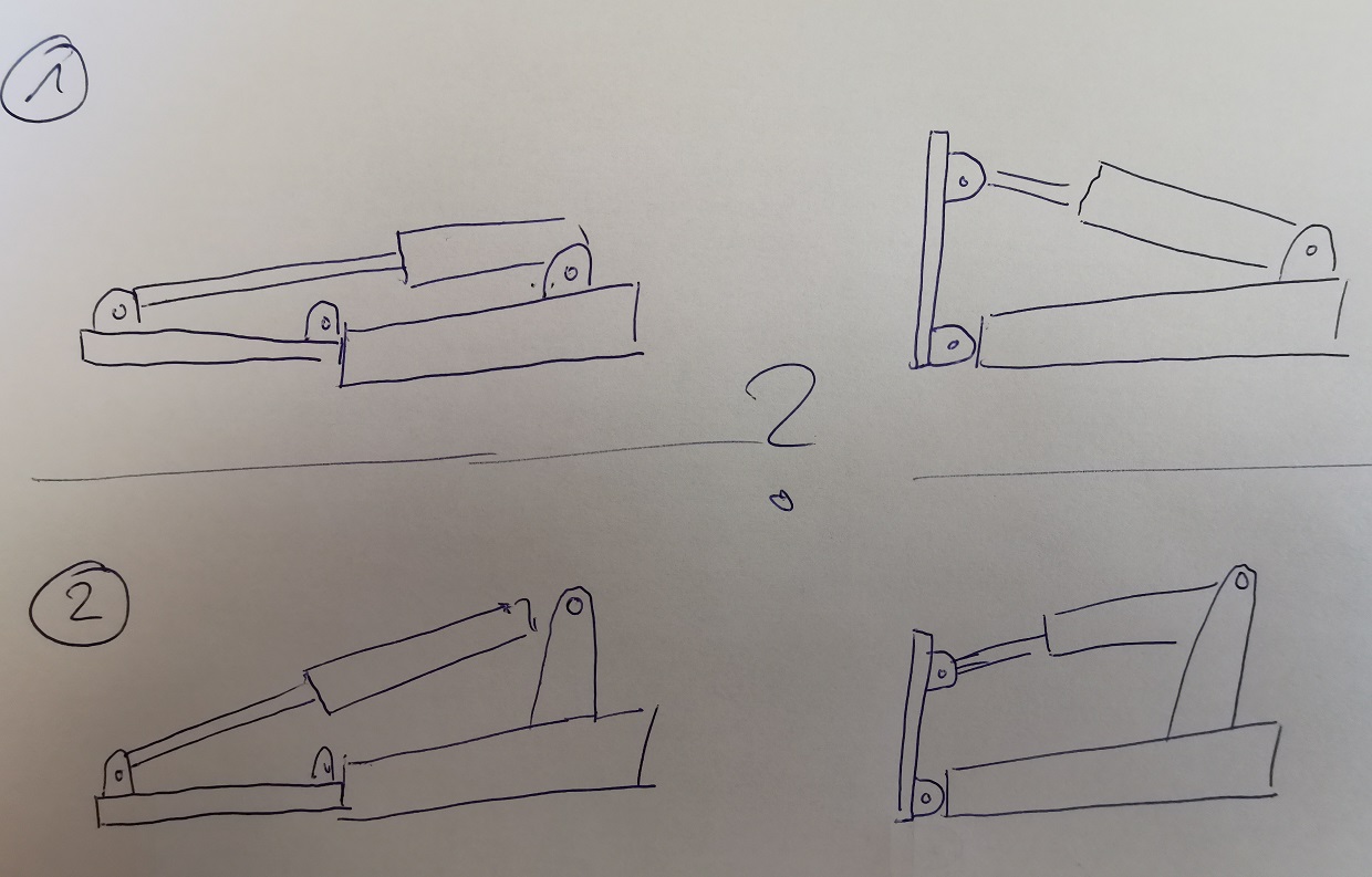 Ohne Umlenkung kommt man über 180 Grad Kippwinkel nicht hinaus. Praktisch sind es durch die Materialstärken und weil man die Totpunkte ja nicht erreichen möchte meist weniger. Durch die Umlenkung verschieben sich aber die Totpunkte und ein Kippwinkel über 180 Grad ist möglich.