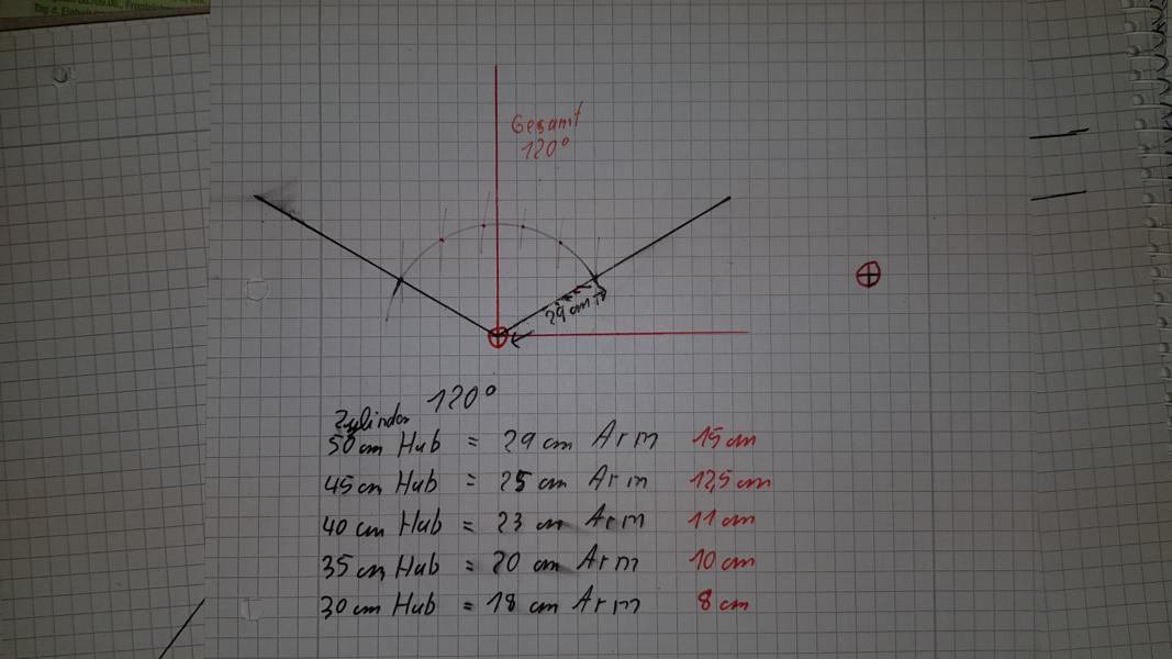 Wenn die Kinematik komplett gestreckt ist, also die Winkel sehr flach verlaufen, hat der Zylinder kaum Kraft.