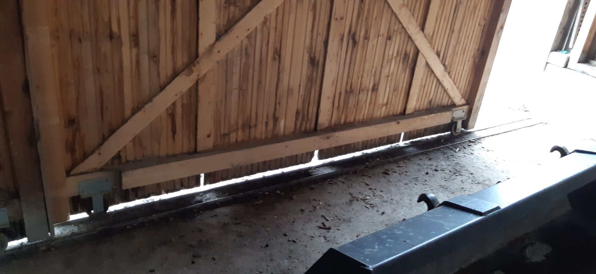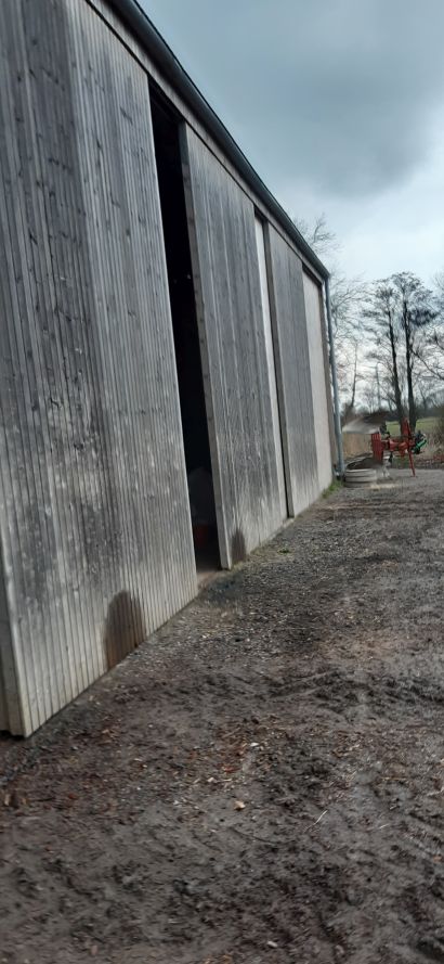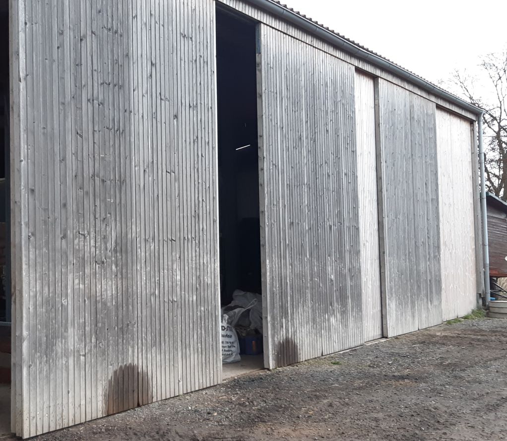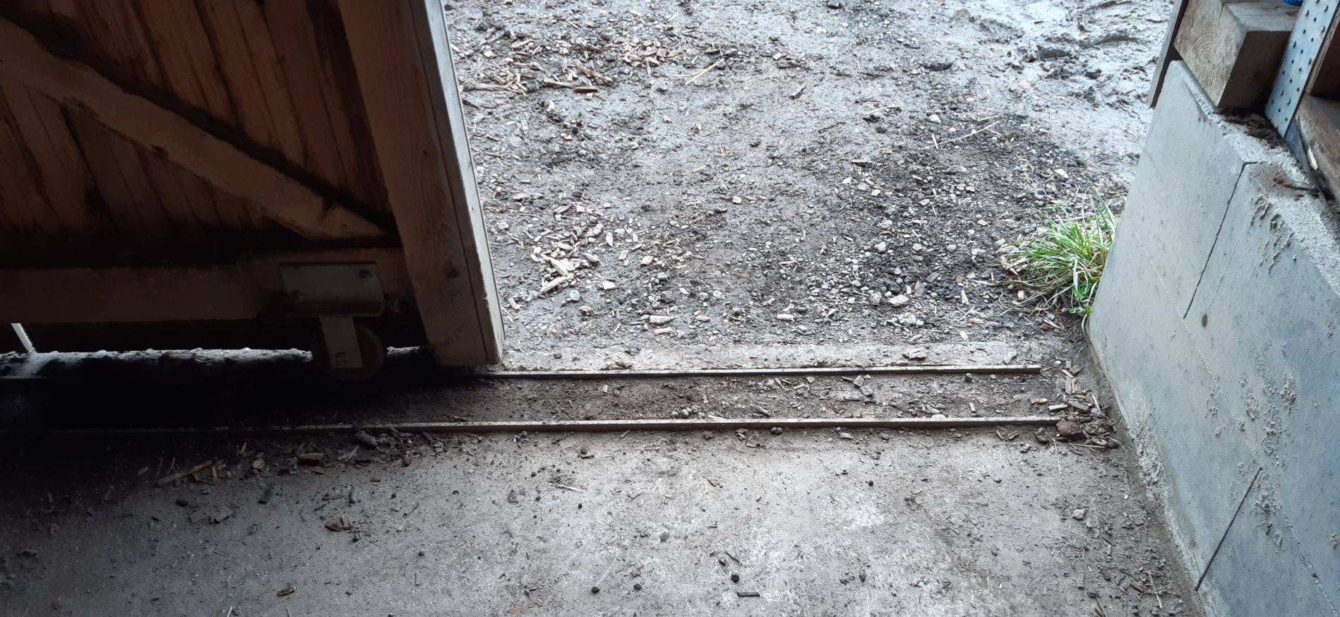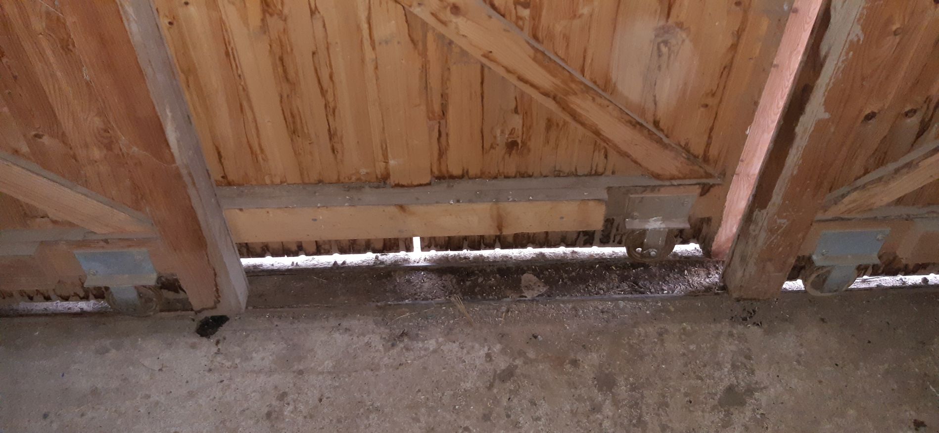 Ja, die untenlaufenden Rollen sind zweite Wahl. Die erste Wahl (schicke Satteldachhalle, eine Trauseite 5m hoch und mit obenlaufenden Toren versehen) ist leider im Vorfeld preislich ausgeschieden. Die dritte Wahl, Heu draußen unter Vlies, ist auch ausgeschieden. Ergo: Version 2 mit Fegen (muss dann halt sein, kann ich auch