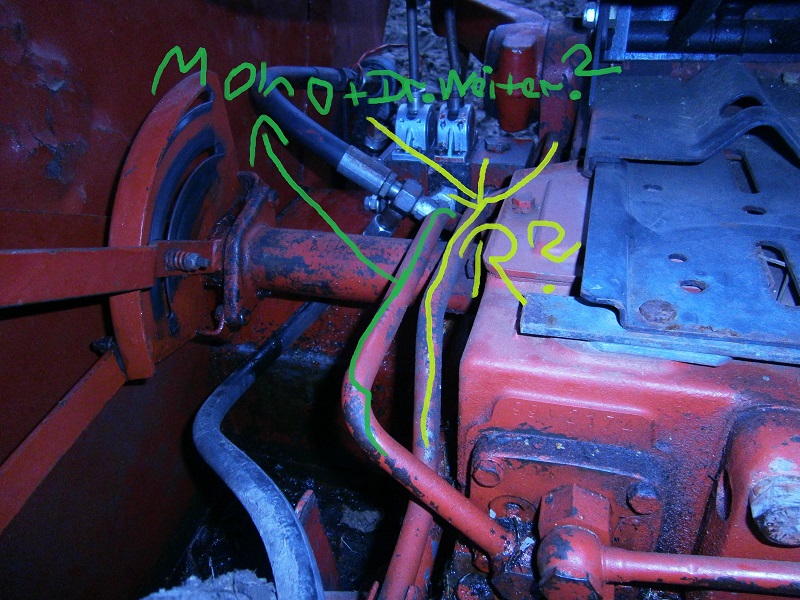 Grund dafür ist, das ich 2 originale EW Steuergeräte verbaut habe (siehe Bild). An einem hängt der Kipperanschluss und an einem der Frontlader. Da das Steuergerät für den Kipperanschluss nicht mehr funktioniert möchte ich dieses ausbauen und an dem anderen den Kipperanschluss anschliessen. Dann möchte ich oben erwähntes einbauen um mit dem 1x EW Anschluss den Lader zu betreiben und an 1x DW Anschluss diesen Sommer eine hydraulische Gerätebetätigung nachzurüsten und evtl. noch den zweiten DW Anschluss verwenden um einen Holzspalter oder ähnliches zu betreiben. Nun würde ich dieses Steuergerät gerne irgendwo am Kotflügel verbauen. Jetzt wäre meine Frage ob ich eine Zuleitung zu diesem Steuergerät an der im Bild markierten Stelle anschliessen kann, und wo ich den Rücklauf dann anschliessen kann.