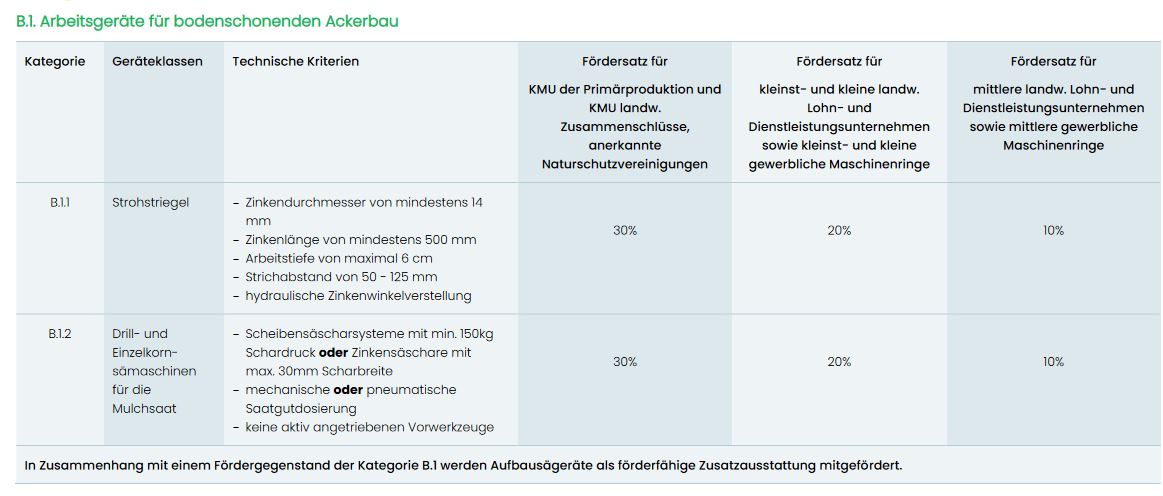 Hier kann man wohl aktuell 30% Förderung u.a. für Stroh-Striegel und eine neue Sämaschine erhalten: