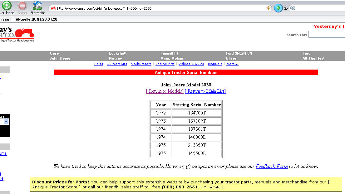 Werde mal im Neujahr mit unserem JD Händler vor Ort teln. der kann bestimmt Licht ins Dunkle bringen.