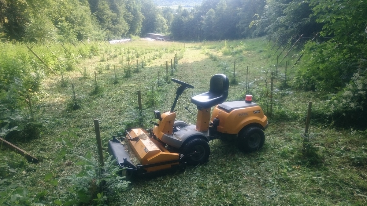 Habe auch nochmals gesucht und bin auf den Trichter gekommen, entweder 4WD Frontmäher mit richtig Power und Schlegelmulcher oder Hochgrasmäher.