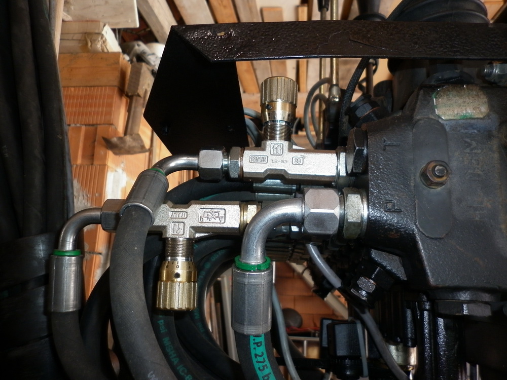 Öl, aber wenn ich die Drehzahl des Schleppers zu Testzwecken auf Volllast hochjage, dann liegen echte 62 Liter an, was ja definitiv ausreicht für den Kran.